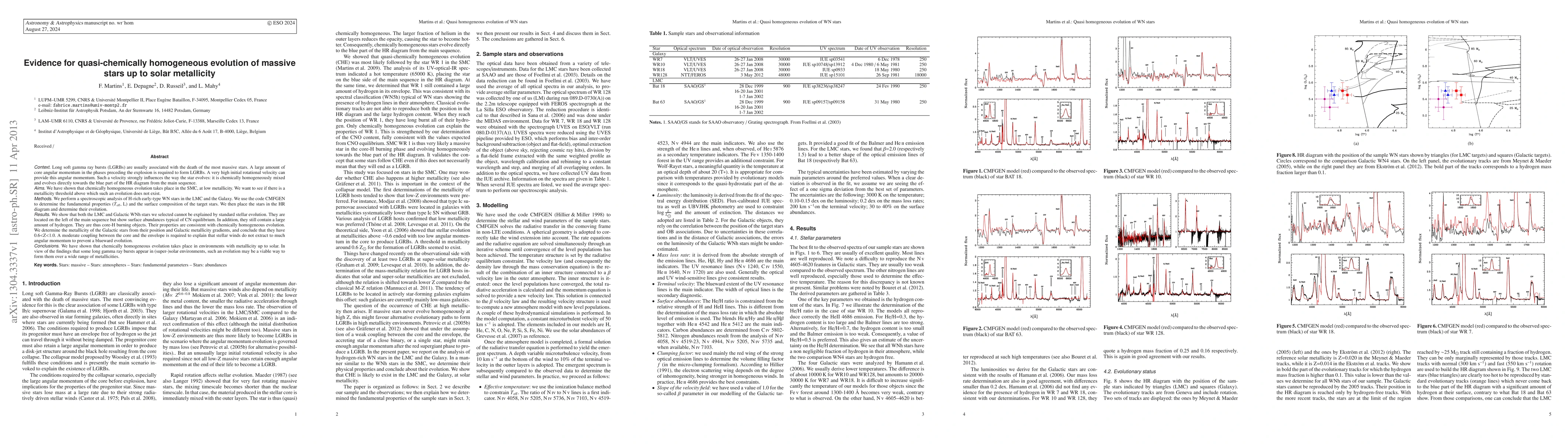 The paper introduces a detailed spectroscopic analysis of WN stars, utilizing CMFGEN to model their atmospheres and determine their properties, which supports the existence of CHE at solar metallicity.
