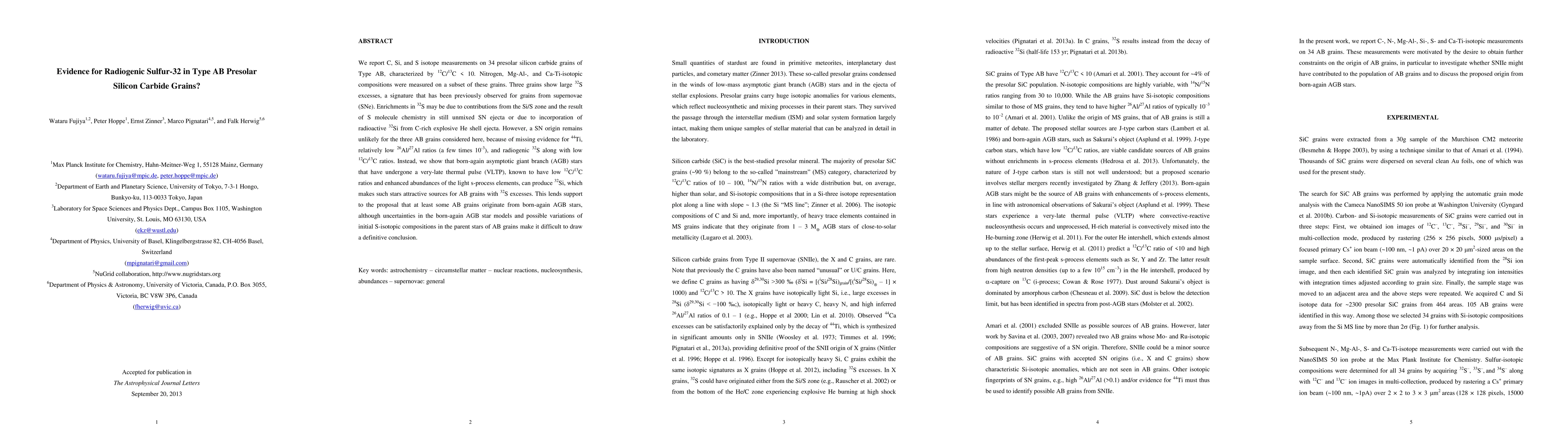 Researchers found evidence of radiogenic sulfur-32 in Type AB presolar silicon carbide grains, suggesting these grains may originate from born-again asymptotic giant branch stars rather than supernovae.