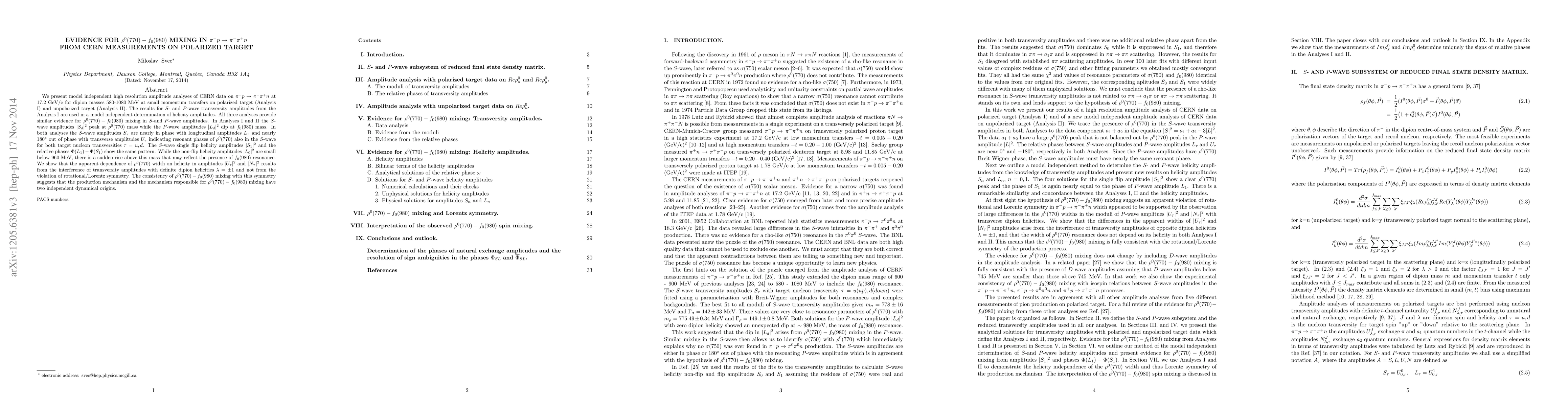 We present model independent high resolution amplitude analyses of CERN data on pi(-)p->pi(-)pi(+)n at 17.2 GeV/c for dipion masses 580-1080 MeV at small momentum transfers on polarized target (Analysis I) and unpolarized target (Analysis II). The results for S- and P-wave transversity amplitudes from the Analysis I are used in a model independent determination of helicity amplitudes. All three analyses provide similar evidence for rho^0(770)-f_0(980) mixing in S- and P-wave amplitudes. In Analyses I and II the S-wave amplitudes |S_d|^2 peak at rho^0(770) mass while the P-wave amplitudes |L_d|^2 dip at f_0(980) mass. In both analyses the S-wave amplitudes S_tau are nearly in phase with amplitudes L_tau for both transversitities tau=u(spin up) and d(spin down), indicating resonant phases of rho^0(770) also in the S-wave. The S-wave single flip amplitudes |S_1|^2 and the relative phases Phi(S_1)-Phi(L_1) show the same pattern. While the non-flip amplitudes |L_0|^2 are small below 960 MeV, there is a sudden rise above this mass that may reflect the presence of f_0(980) resonance. We show that the apparent dependence of rho^0(770) width on helicity in amplitudes |U_tau|^2 and |N_tau|^2 results from the interference of amplitudes with helicities lambda=+/-1 and not from the violation of rotational/Lorentz symmetry. This suggests that the production mechanism and the mechanism responsible for rho^0(770)-f_0(980) mixing have independent dynamical origins.