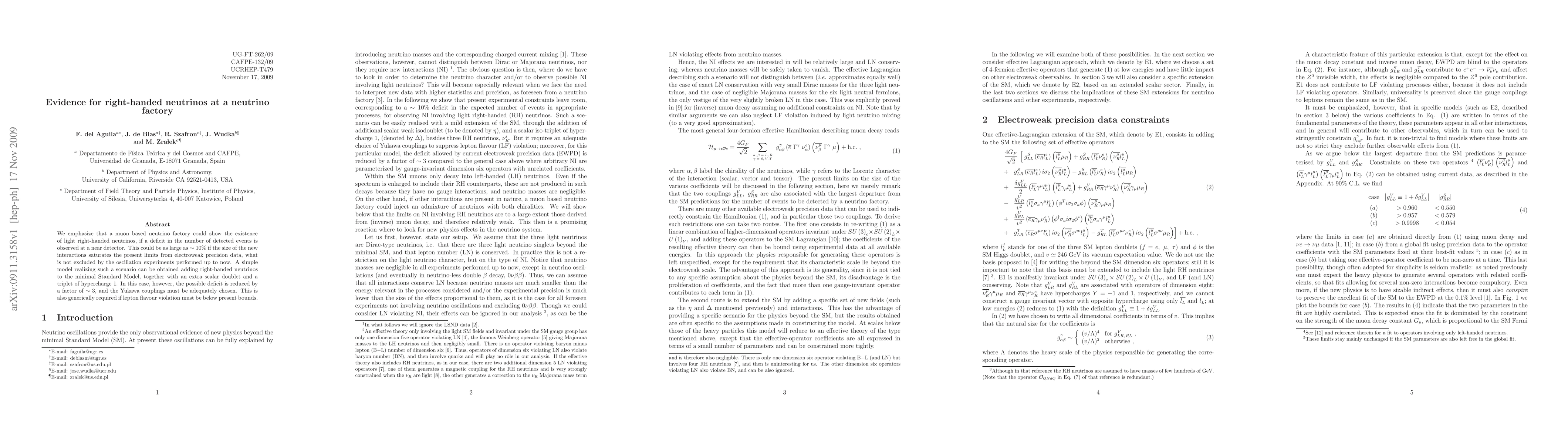 We emphasize that a muon based neutrino factory could show the existence of light right-handed neutrinos, if a deficit in the number of detected events is observed at a near detector. This could be as large as ~10% if the size of the new interactions saturates the present limits from electroweak precision data, what is not excluded by the oscillation experiments performed up to now. A simple model realizing such a scenario can be obtained adding right-handed neutrinos to the minimal Standard Model, together with an extra scalar doublet and a triplet of hypercharge 1. In this case, however, the possible deficit is reduced by a factor of ~3, and the Yukawa couplings must be adequately chosen. This is also generically required if lepton flavour violation must be below present bounds.