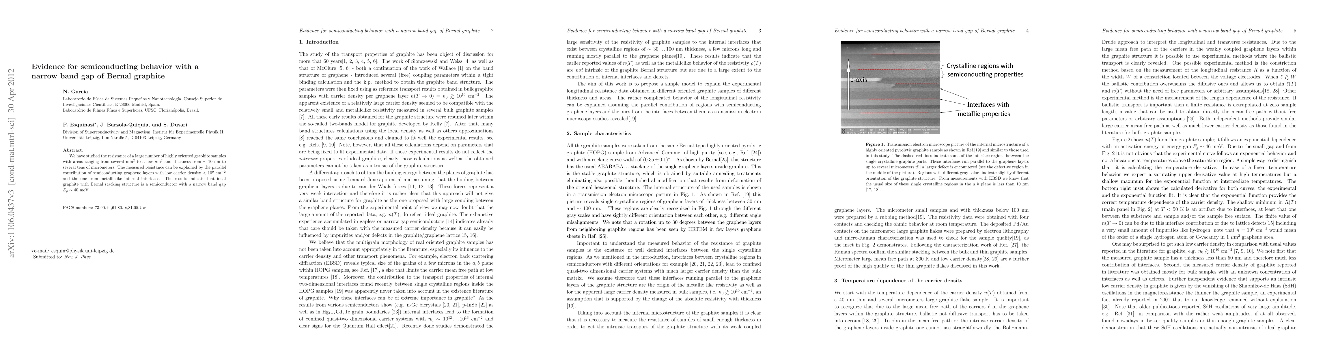 This study reveals that Bernal graphite exhibits semiconducting behavior with a narrow band gap of approximately 40 meV, attributed to the parallel contribution of semiconducting graphene layers and metallic-like internal interfaces. The low carrier density suggests a significant potential for electronic applications.