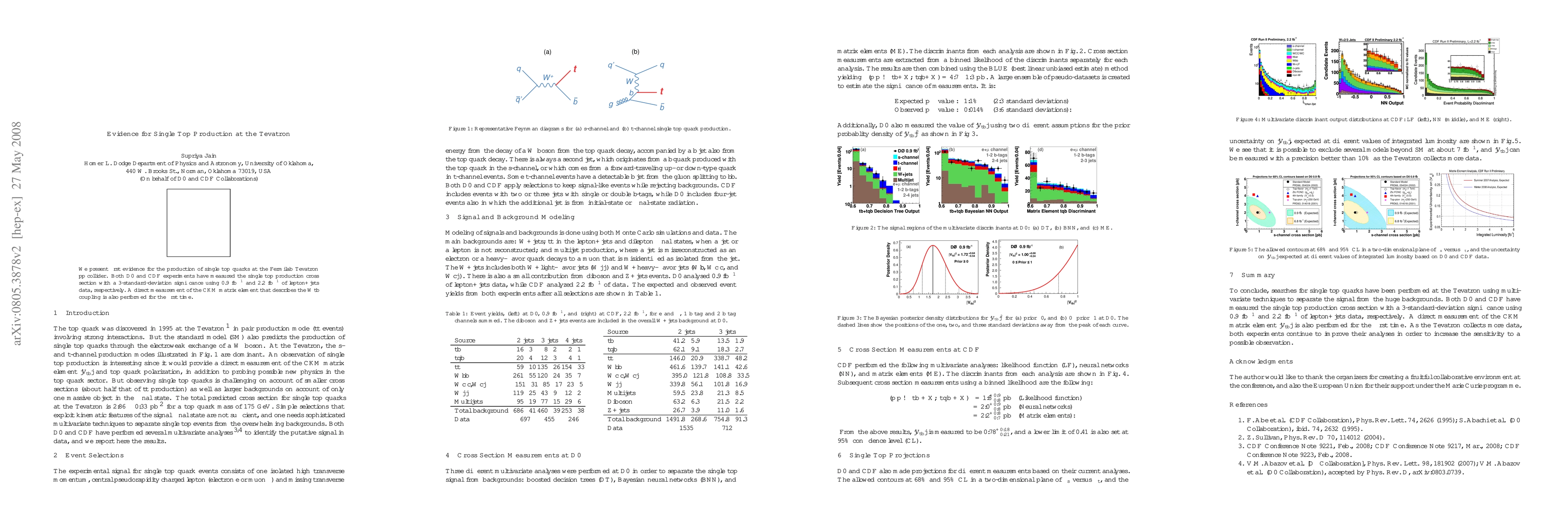 The D0 and CDF experiments at the Tevatron collider provide first evidence for single top quark production, achieving a 3-sigma significance. Additionally, a direct measurement of the CKM matrix element describing the $Wtb$ coupling is conducted for the first time.