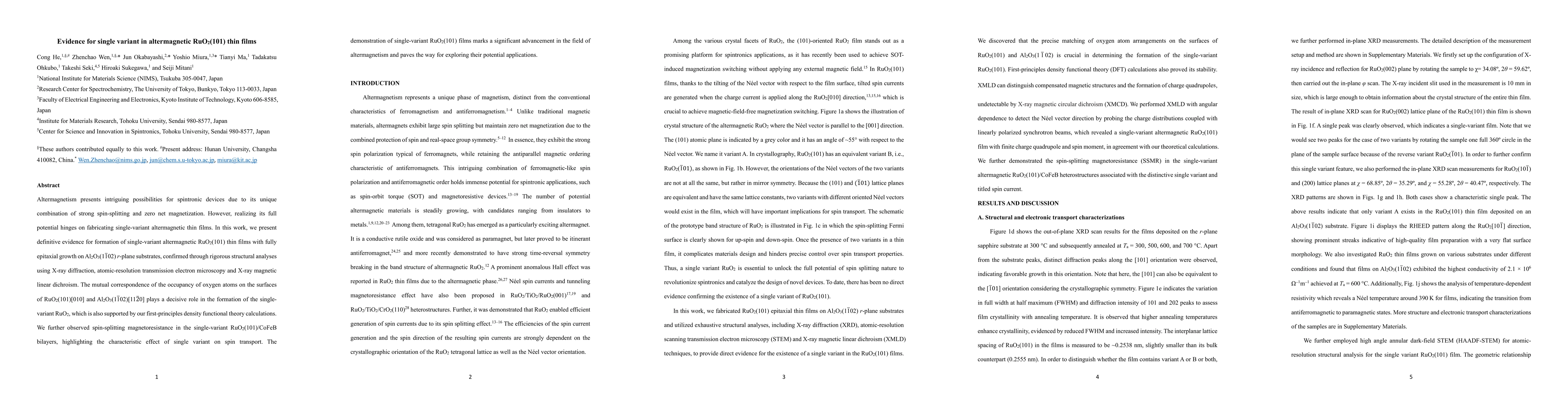 Altermagnetism presents intriguing possibilities for spintronic devices due to its unique combination of strong spin-splitting and zero net magnetization. However, realizing its full potential hinges on fabricating single-variant altermagnetic thin films. In this work, we present definitive evidence for the formation of single-variant altermagnetic RuO2(101) thin films with fully epitaxial growth on Al2O3(1-102) r-plane substrates, confirmed through rigorous structural analyses using X-ray diffraction, atomic-resolution transmission electron microscopy and X-ray magnetic linear dichroism. The mutual correspondence of the occupancy of oxygen atoms on the surfaces of RuO2(101)[010] and Al2O3(1-102)[11-20] plays a decisive role in the formation of the single-variant RuO2, which is also supported by our first-principles density functional theory calculations. We further observed spin-splitting magnetoresistance in the single-variant RuO2(101)/CoFeB bilayers, highlighting the characteristic effect of single variant on spin transport. The demonstration of single-variant RuO2(101) films marks a significant advancement in the field of altermagnetism and paves the way for exploring their potential applications.