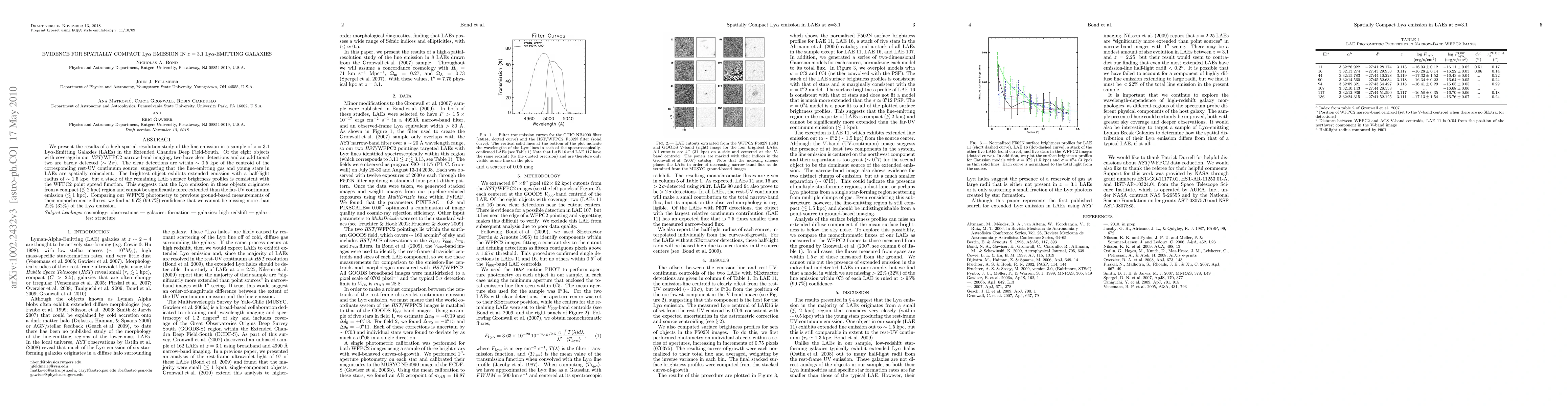 This study reveals that the Lyman Alpha emission in z=3.1 Lyman-Alpha-Emitting Galaxies (LAEs) is spatially compact, typically within ~2 kpc, aligning closely with the location of young stars. The brightest LAE shows some extended emission, but the majority exhibit compact profiles consistent with the HST point spread function.