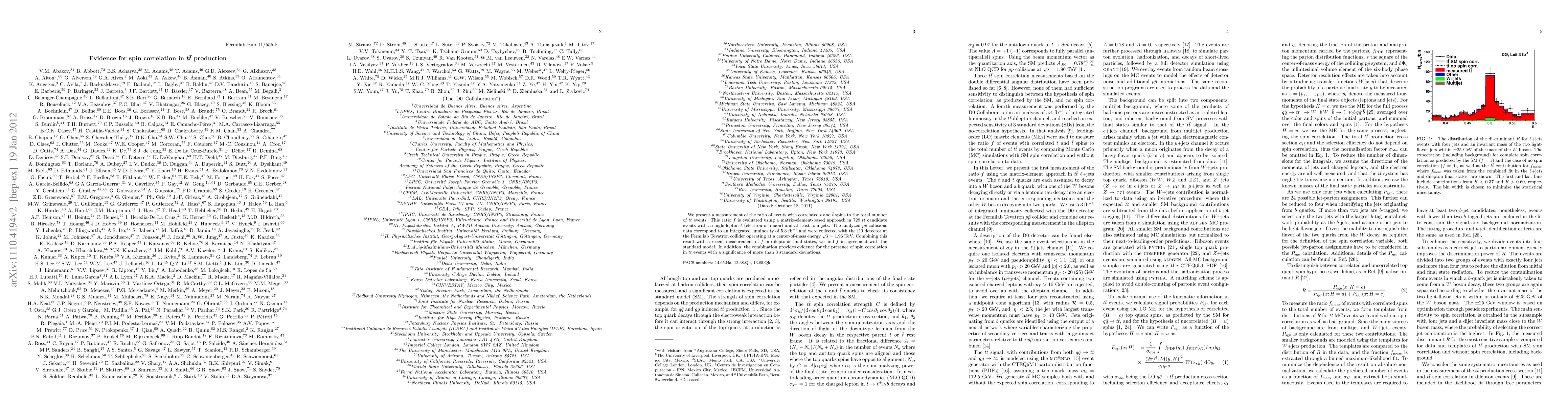 We present a measurement of the ratio of events with correlated t and tbar spins to the total number of ttbar events. This ratio f is evaluated using a matrix-element-based approach in events with a single lepton (electron or muon) and at least four jets. We analyze ppbar collisions data corresponding to an integrated luminosity of 5.3 fb^-1 collected with the D0 detector at the Fermilab Tevatron collider operating at a center of mass energy $\sqrt{s}=1.96$ TeV. Combining this result with a recent measurement of f in dilepton final states, we find f in agreement with the standard model. In addition, the combination provides evidence for the presence of spin correlation in ttbar events with a significance of more than three standard deviations.