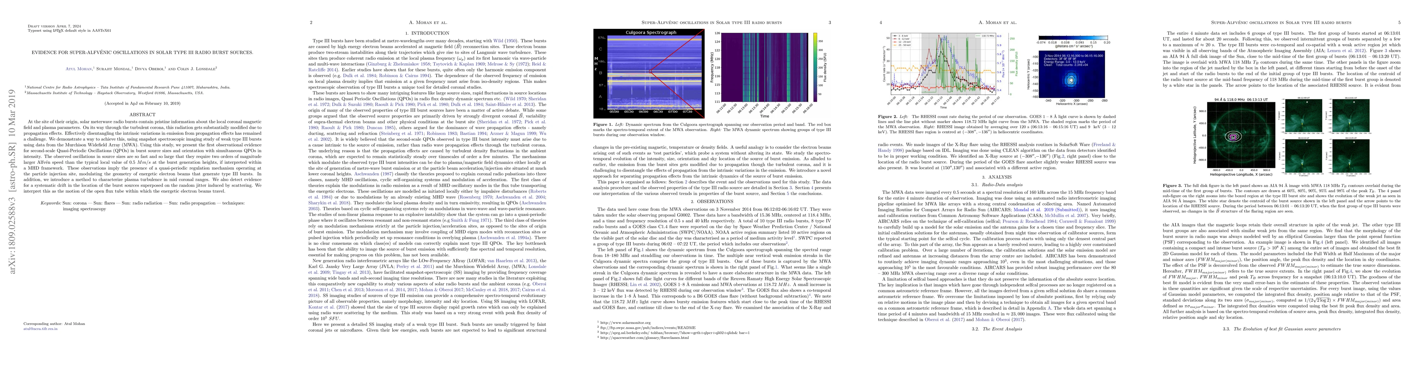 At the site of their origin, solar meterwave radio bursts contain pristine information about the local coronal magnetic field and plasma parameters. On its way through the turbulent corona, this radiation gets substantially modified due to the propagation effects. Effectively disentangling the intrinsic variations in emission from propagation effects has remained a challenge. We demonstrate a way to achieve this, using snapshot spectroscopic imaging study of weak type III bursts using data from the Murchison Widefield Array (MWA). We use this study to present the first observational evidence for second-scale Quasi-Periodic Oscillations (QPOs) in burst source sizes and orientation with simultaneous QPOs in intensity. The observed oscillations in source sizes are so fast and so large that, they would require two orders of magnitude larger Alfven speed than the typical 0.5 Mm/s, if interpreted within a MHD framework. These observations imply the presence of a quasi-periodic regulation mechanism operating at the particle injection site, modulating the geometry of energetic electron beams that generate type III bursts. In addition, we introduce a method to characterize plasma turbulence in mid coronal ranges, using such frequent weak bursts. We also detect evidence for a systematic drift in the location of the burst sources superposed on the random jitter induced by scattering. We interpret this as the motion of the open flux tube within which the energetic electron beams travel.