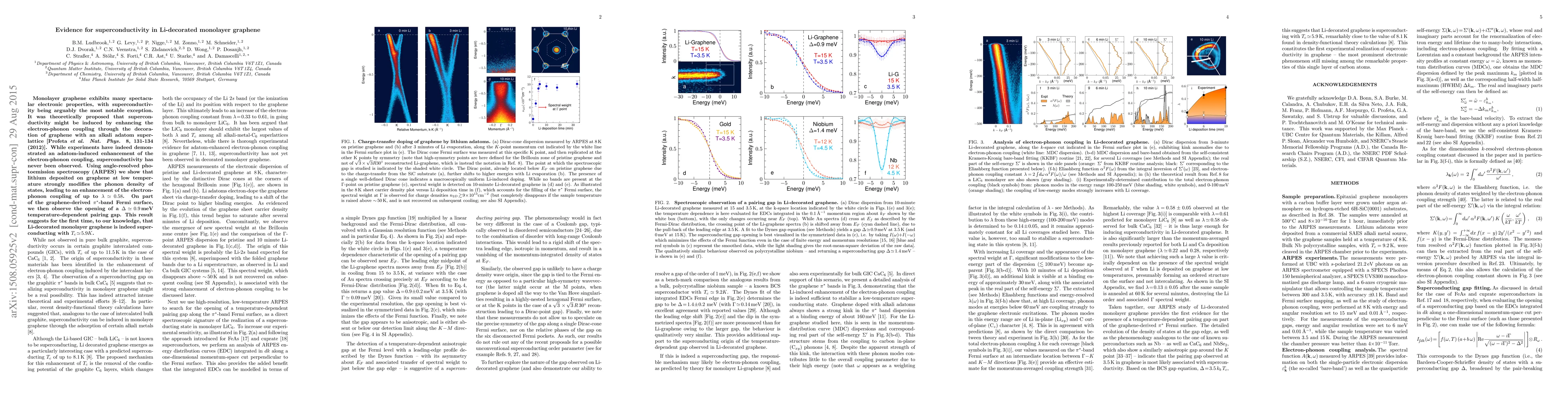 This research demonstrates the first evidence of superconductivity in Li-decorated monolayer graphene through ARPES, showing a temperature-dependent pairing gap and electron-phonon coupling enhancement, indicating a critical temperature of approximately 5.9 K.