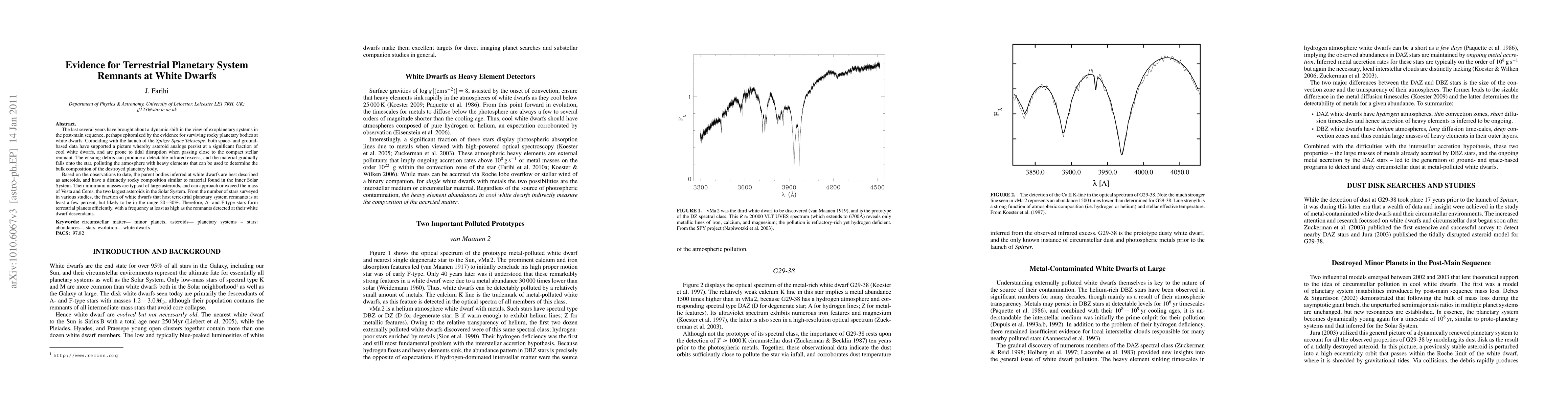 The last several years have brought about a dynamic shift in the view of exoplanetary systems in the post-main sequence, perhaps epitomized by the evidence for surviving rocky planetary bodies at white dwarfs. Coinciding with the launch of the Spitzer Space Telescope, both space- and ground-based data have supported a picture whereby asteroid analogs persist at a significant fraction of cool white dwarfs, and are prone to tidal disruption when passing close to the compact stellar remnant. The ensuing debris can produce a detectable infrared excess, and the material gradually falls onto the star, polluting the atmosphere with heavy elements that can be used to determine the bulk composition of the destroyed planetary body. Based on the observations to date, the parent bodies inferred at white dwarfs are best described as asteroids, and have a distinctly rocky composition similar to material found in the inner Solar System. Their minimum masses are typical of large asteroids, and can approach or exceed the mass of Vesta and Ceres, the two largest asteroids in the Solar System. From the number of stars surveyed in various studies, the fraction of white dwarfs that host terrestrial planetary system remnants is at least a few percent, but likely to be in the range 20% to 30%. Therefore, A- and F-type stars form terrestrial planets efficiently, with a frequency at least as high as the remnants detected at their white dwarf descendants.