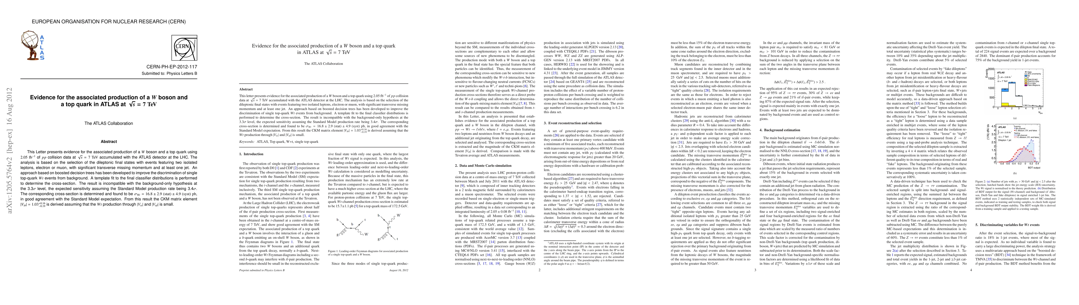 This letter presents evidence for the associated production of a W boson and a top quark using 2.05 fb^-1 of pp collision data at sqrt(s) = 7 TeV accumulated with the ATLAS detector at the LHC. The analysis is based on the selection of the dileptonic final states with events featuring two isolated leptons, electron or muon, with significant transverse missing momentum and at least one jet. An approach based on boosted decision trees has been developed to improve the discrimination of single top-quark Wt events from background. A template fit to the final classifier distributions is performed to determine the cross-section. The result is incompatible with the background-only hypothesis at the 3.3 sigma level, the expected sensitivity assuming the Standard Model production rate being 3.4 sigma. The corresponding cross-section is determined and found to be sigma_Wt = 16.8 +/- 2.9 (stat) +/- 4.9 (syst) pb, in good agreement with the Standard Model expectation. From this result the CKM matrix element |V_{tb}| = 1.03{+0.16}{-0.19} is derived assuming that the Wt production through |V_{ts}| and |V_{td}| is small.