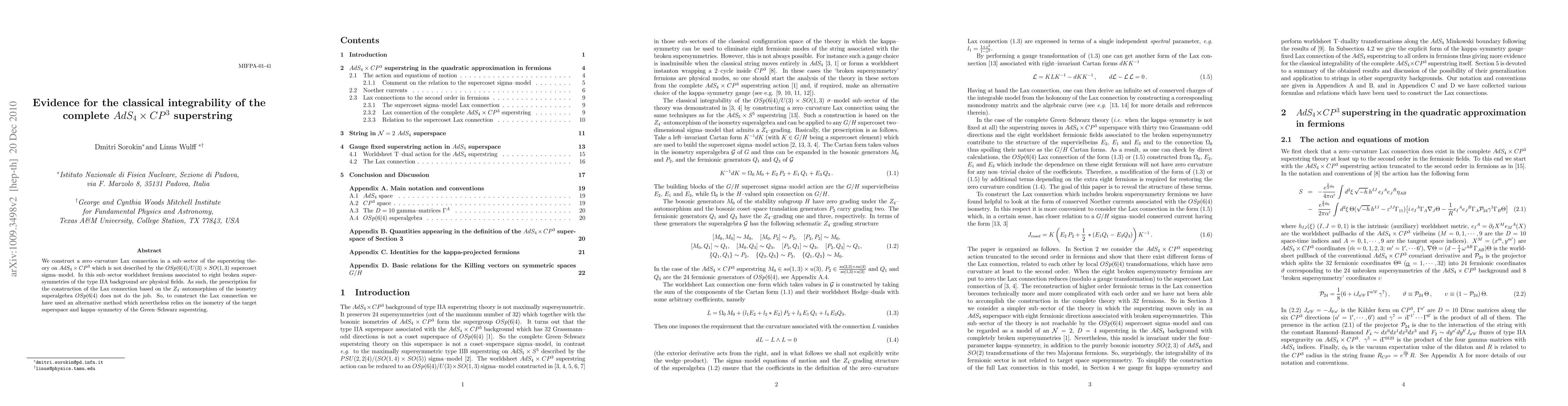 We construct a zero-curvature Lax connection in a sub-sector of the superstring theory on AdS(4) x CP(3) which is not described by the OSp(6|4)/U(3) x SO(1,3) supercoset sigma-model. In this sub-sector worldsheet fermions associated to eight broken supersymmetries of the type IIA background are physical fields. As such, the prescription for the construction of the Lax connection based on the Z_4-automorphism of the isometry superalgebra OSp(6|4) does not do the job. So, to construct the Lax connection we have used an alternative method which nevertheless relies on the isometry of the target superspace and kappa-symmetry of the Green-Schwarz superstring.