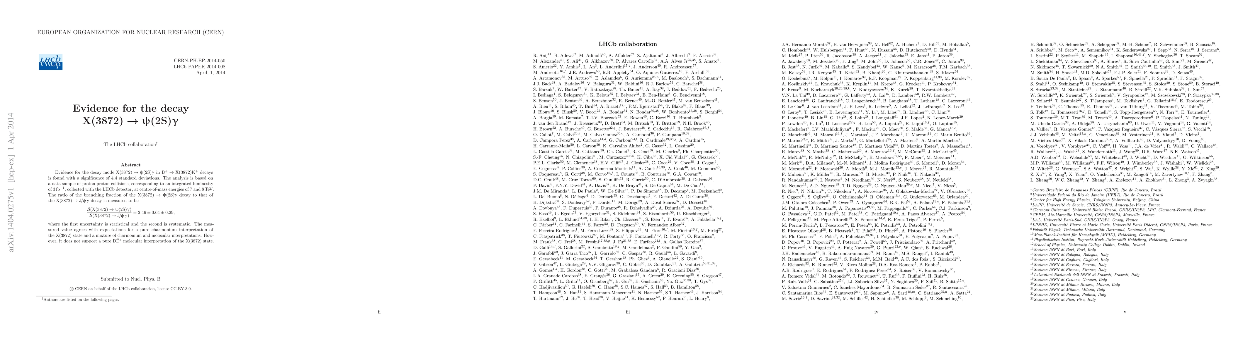 Evidence for the decay mode $X(3872)\rightarrow\psi(2S)\gamma$ in $B^+\rightarrow X(3872)K^+$ decays is found with a significance of 4.4 standard deviations. The analysis is based on a data sample of proton-proton collisions, corresponding to an integrated luminosity of 3fb$^{-1}$ collected with the LHCb detector, at centre-of-mass energies of 7 and 8TeV. The ratio of the branching fraction of the $X(3872)\to\psi(2S)\gamma$ decay to that of the $X(3872)\rightarrow J/\psi \gamma$ decay is measured to be $$ \frac{Br(X(3872)\rightarrow\psi(2S)\gamma)}{Br(X(3872)\rightarrow J/\psi\gamma)} = 2.46\pm0.64\pm0.29, %\pm0.06,$$ where the first uncertainty is statistical and the second is systematic. The measured value agrees with expectations for a pure charmonium interpretation of the $X(3872)$ state and a mixture of charmonium and molecular interpretations. However, it does not support a pure $D\bar{D}^{*}$ molecular interpretation of the $X(3872)$state.