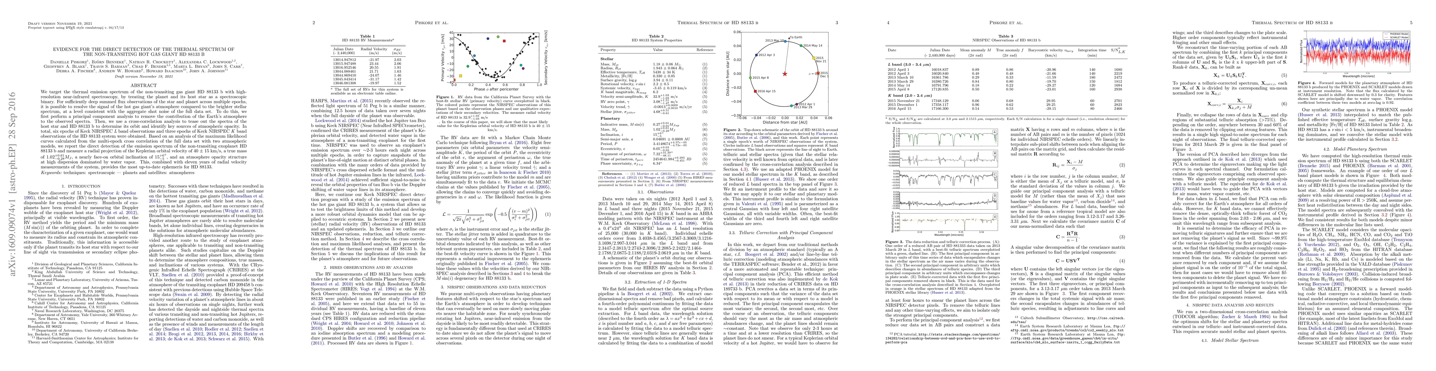 We target the thermal emission spectrum of the non-transiting gas giant HD 88133 b with high-resolution near-infrared spectroscopy, by treating the planet and its host star as a spectroscopic binary. For sufficiently deep summed flux observations of the star and planet across multiple epochs, it is possible to resolve the signal of the hot gas giant's atmosphere compared to the brighter stellar spectrum, at a level consistent with the aggregate shot noise of the full data set. To do this, we first perform a principal component analysis to remove the contribution of the Earth's atmosphere to the observed spectra. Then, we use a cross-correlation analysis to tease out the spectra of the host star and HD 88133 b to determine its orbit and identify key sources of atmospheric opacity. In total, six epochs of Keck NIRSPEC L band observations and three epochs of Keck NIRSPEC K band observations of the HD 88133 system were obtained. Based on an analysis of the maximum likelihood curves calculated from the multi-epoch cross correlation of the full data set with two atmospheric models, we report the direct detection of the emission spectrum of the non-transiting exoplanet HD 88133 b and measure a radial projection of the Keplerian orbital velocity of 40 $\pm$ 15 km/s, a true mass of 1.02$^{+0.61}_{-0.28}M_J$, a nearly face-on orbital inclination of 15${^{+6}_{-5}}^{\circ}$, and an atmosphere opacity structure at high dispersion dominated by water vapor. This, combined with eleven years of radial velocity measurements of the system, provides the most up-to-date ephemeris for HD 88133.