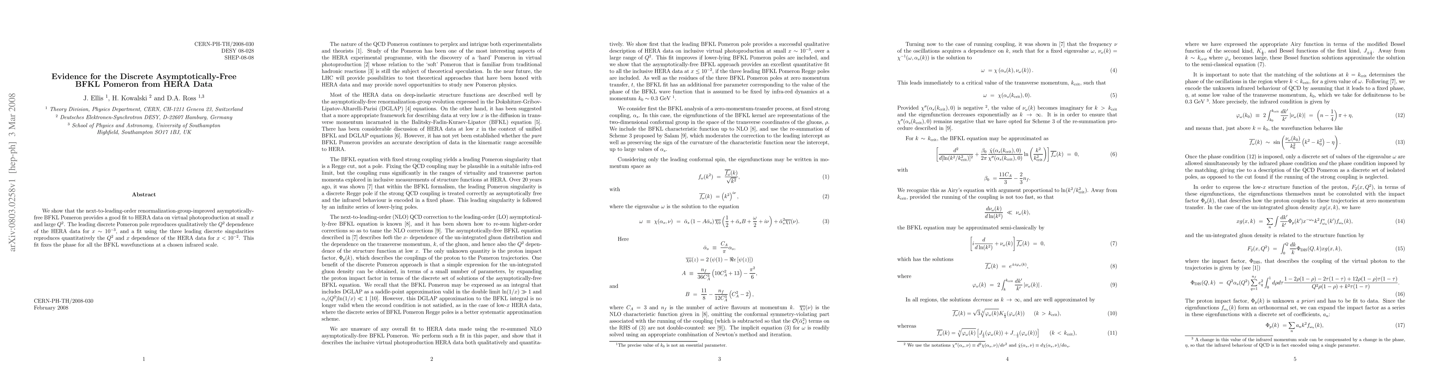 We show that the next-to-leading-order renormalization-group-improved asymptotically-free BFKL Pomeron provides a good fit to HERA data on virtual photoproduction at small x and large Q^2. The leading discrete Pomeron pole reproduces qualitatively the Q^2 dependence of the HERA data for x ~10^{-3}, and a fit using the three leading discrete singularities reproduces quantitatively the Q^2 and x dependence of the HERA data for x < 10^{-2}. This fit fixes the phase for all the BFKL wavefunctions at a chosen infrared scale.
