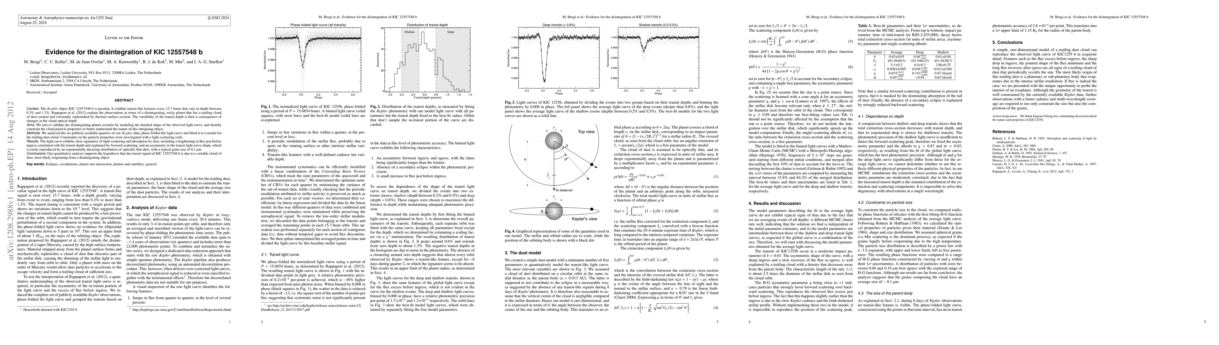 The research validates the hypothesis that the Kepler object KIC 12557548 b is a disintegrating rocky planet, evidenced by its variable transit depths caused by a trailing dust cloud, and models its light curve to constrain the cloud's particle properties, finding typical grain sizes of 0.1 micron.