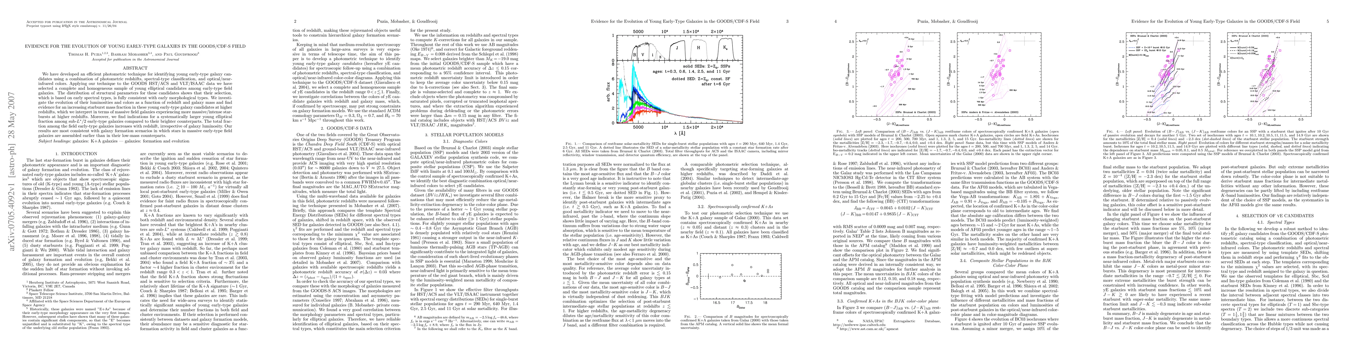 We have developed an efficient photometric technique for identifying young early-type galaxy candidates using a combination of photometric redshifts, spectral-type classification, and optical/near-infrared colors. Applying our technique to the GOODS HST/ACS and VLT/ISAAC data we have selected a complete and homogeneous sample of young elliptical candidates among early-type field galaxies. The distribution of structural parameters for these candidates shows that their selection, which is based on early spectral types, is fully consistent with early morphological types. We investigate the evolution of their luminosities and colors as a function of redshift and galaxy mass and find evidence for an increasing starburst mass fraction in these young early-type galaxy candidates at higher redshifts, which we interpret in terms of massive field galaxies experiencing more massive/intense starbursts at higher redshifts. Moreover, we find indications for a systematically larger young elliptical fraction among sub-L*/2 early-type galaxies compared to their brighter counterparts. The total fraction among the field early-type galaxies increases with redshift, irrespective of galaxy luminosity. Our results are most consistent with galaxy formation scenarios in which stars in massive early-type field galaxies are assembled earlier than in their low-mass counterparts.