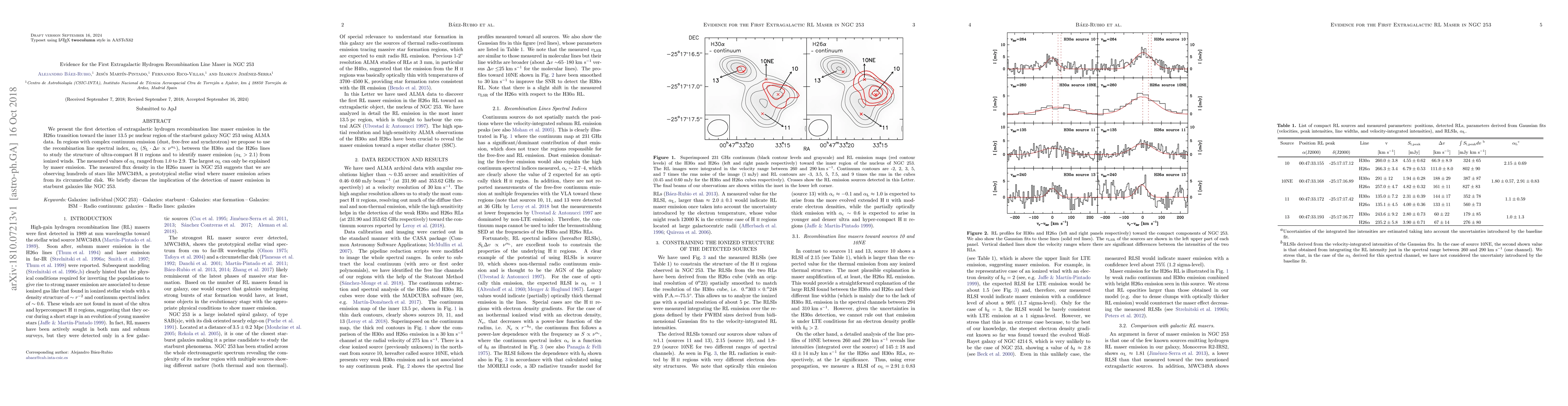 This paper reports the first detection of extragalactic hydrogen recombination line maser emission in the H26alpha transition in NGC 253 using ALMA data, suggesting the presence of ionized winds and circumstellar disks similar to MWC349A. The study proposes using the recombination line spectral index to analyze ultra-compact HII regions and identify maser activity.