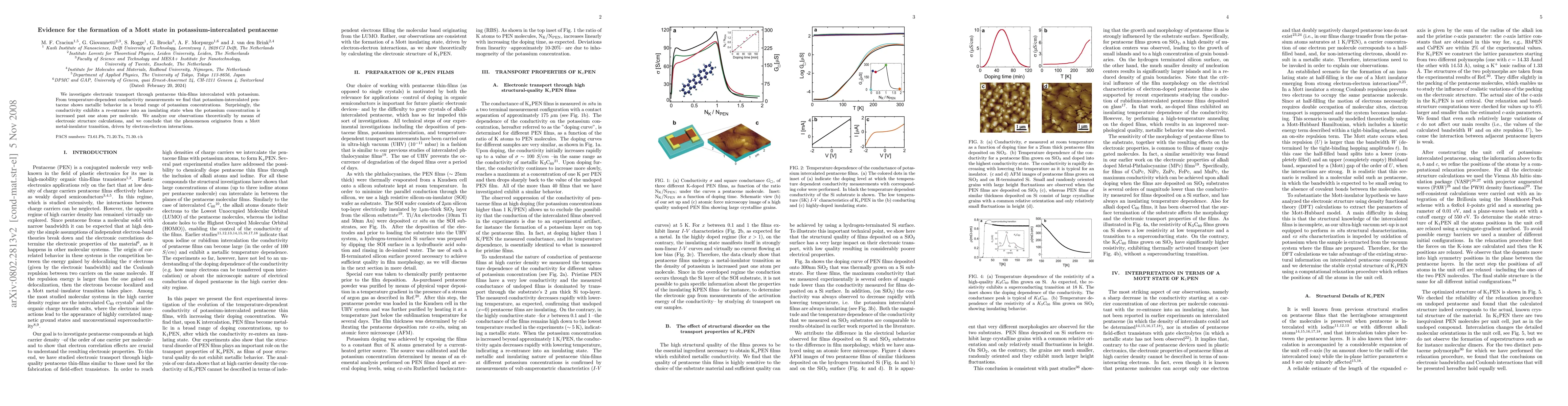 We investigate electronic transport through pentacene thin-films intercalated with potassium. From temperature-dependent conductivity measurements we find that potassium-intercalated pentacene shows metallic behavior in a broad range of potassium concentrations. Surprisingly, the conductivity exhibits a re-entrance into an insulating state when the potassium concentration is increased past one atom per molecule. We analyze our observations theoretically by means of electronic structure calculations, and we conclude that the phenomenon originates from a Mott metal-insulator transition, driven by electron-electron interactions.