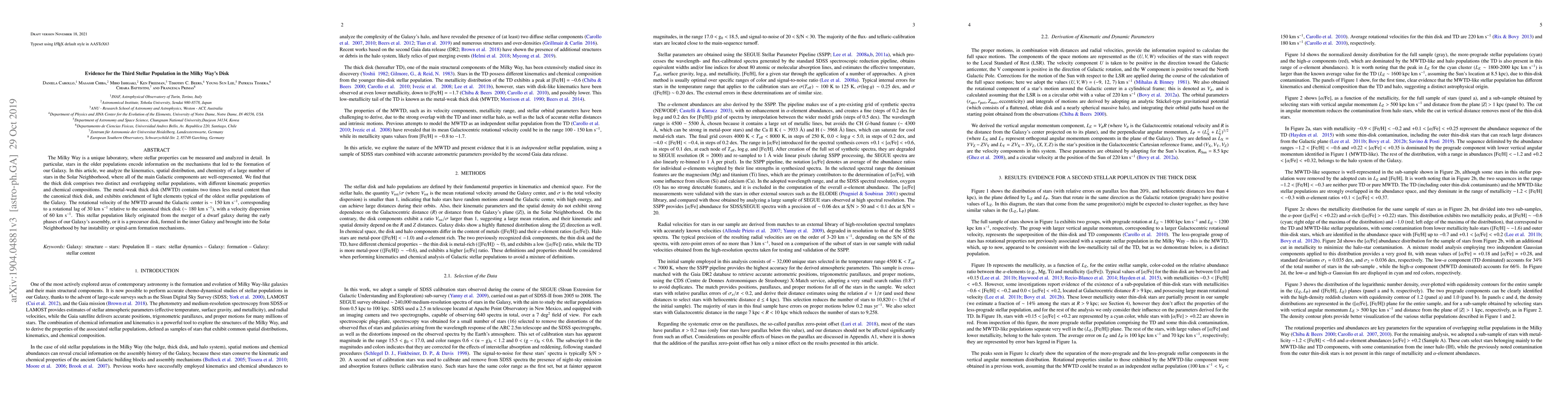 This paper identifies a third stellar population in the Milky Way's thick disk, termed the metal-weak thick disk (MWTD), which has distinct kinematic and chemical properties compared to the canonical thick disk. The MWTD likely originated from early galactic mergers or internal processes.