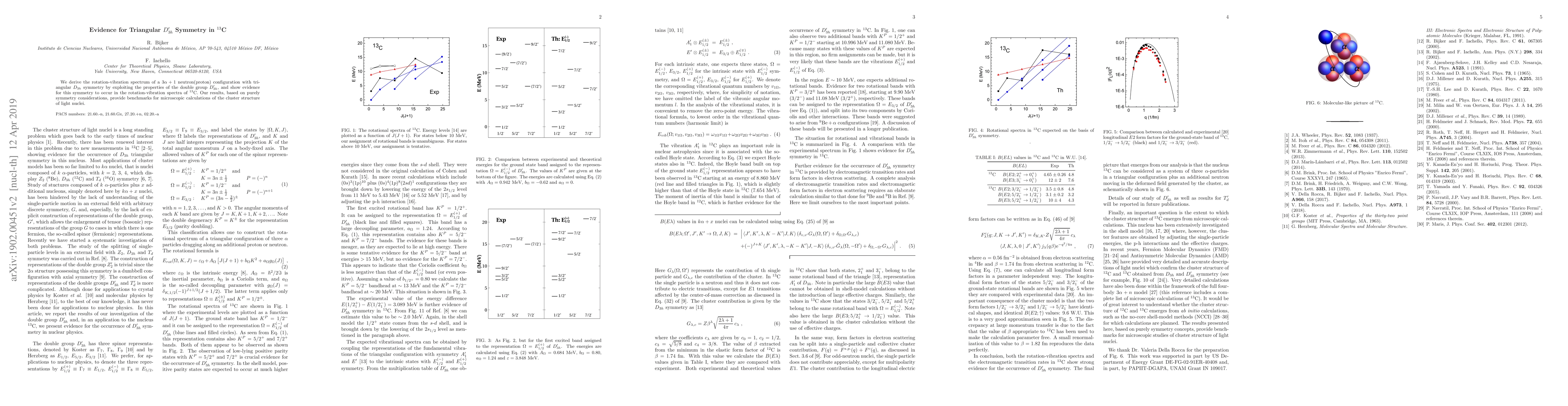 The paper presents evidence for triangular D'(3h) symmetry in 13C, derived via the double group D'(3h) properties, offering benchmarks for nuclear cluster structure calculations.
