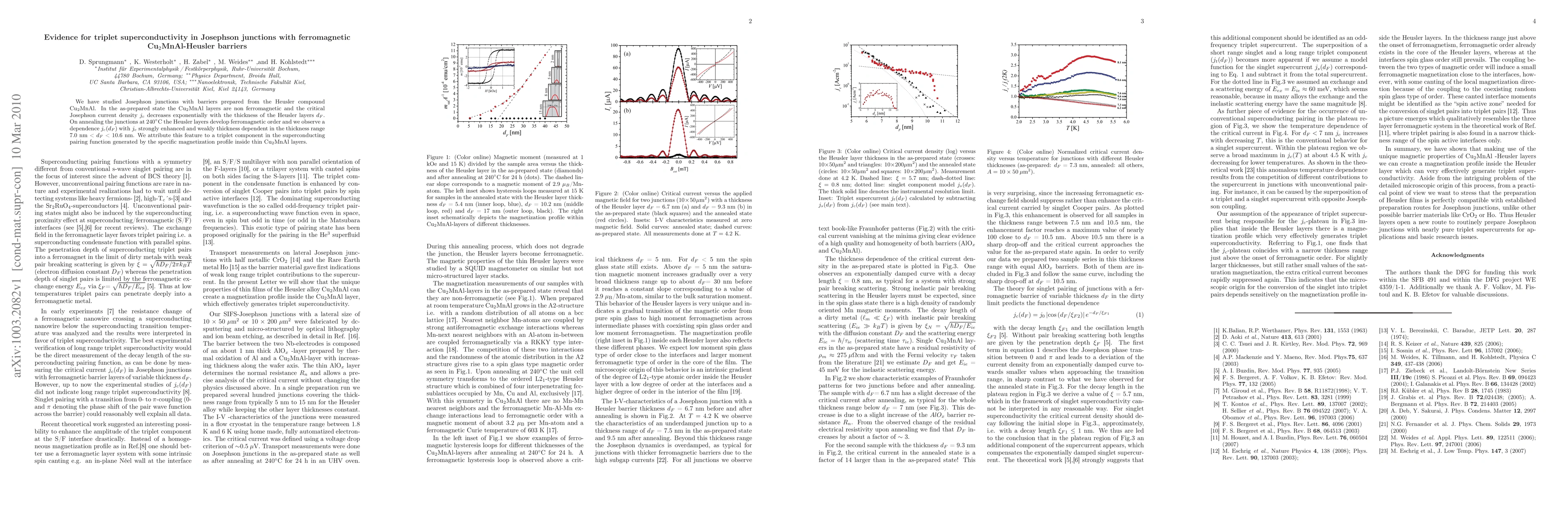 This study investigates Josephson junctions with ferromagnetic Cu$_2$MnAl-Heusler barriers, finding that annealing induces ferromagnetic order and enhances the critical Josephson current density, suggesting the presence of a triplet superconductivity component due to the magnetization profile in the Cu$_2$MnAl layers.