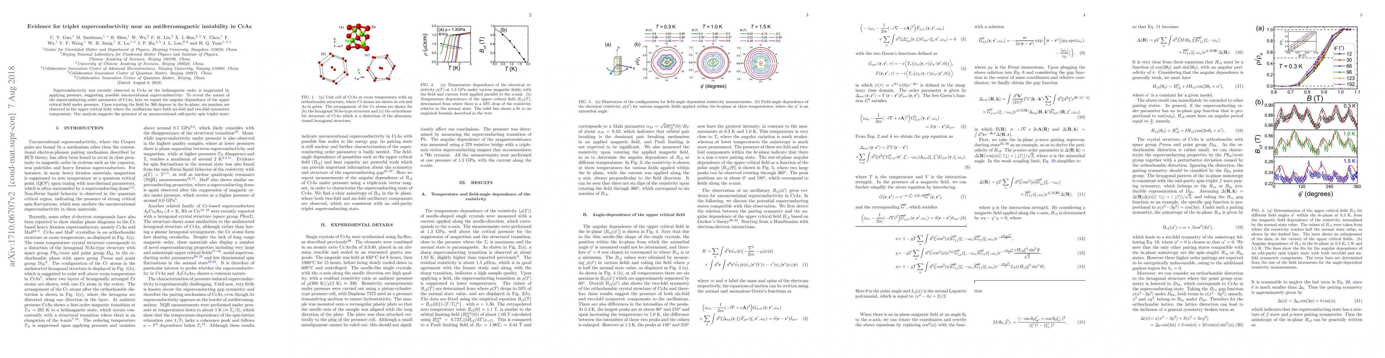 Superconductivity was recently observed in CrAs as the helimagnetic order is suppressed by applying pressure, suggesting possible unconventional superconductivity. To reveal the nature of the superconducting order parameter of CrAs, here we report the angular dependence of the upper critical field under pressure. Upon rotating the field by 360 degrees in the $bc$-plane, six maxima are observed in the upper critical field, where the oscillations have both six-fold and two-fold symmetric components. Our analysis suggests the presence of an unconventional odd-parity spin triplet state.