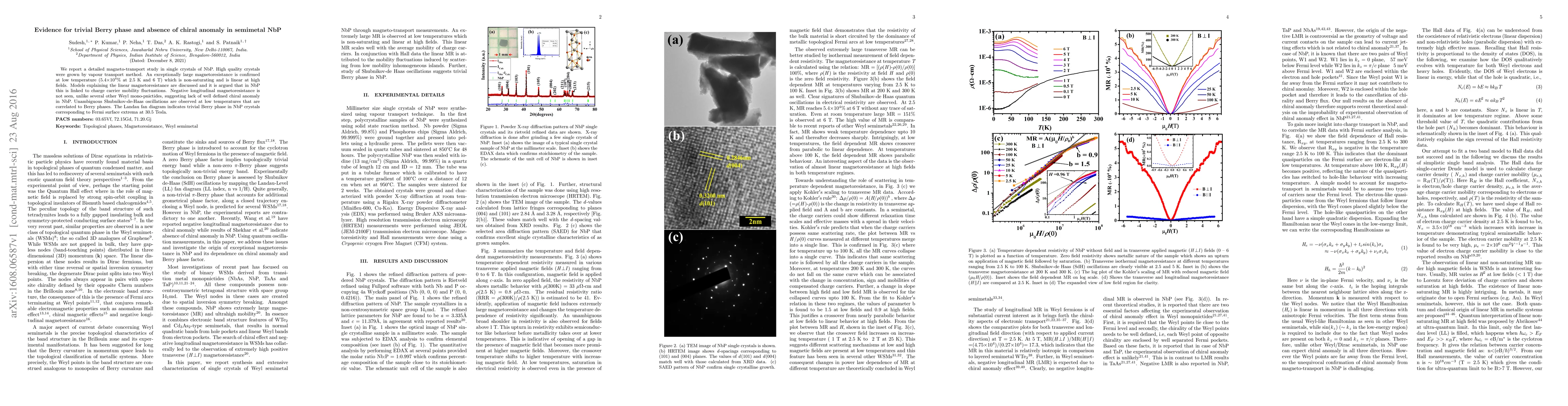 This study reveals a trivial Berry phase and the absence of a chiral anomaly in NbP semimetal through detailed magneto-transport analysis, showing non-saturating linear magnetoresistance linked to charge carrier mobility fluctuations and no negative longitudinal magnetoresistance.