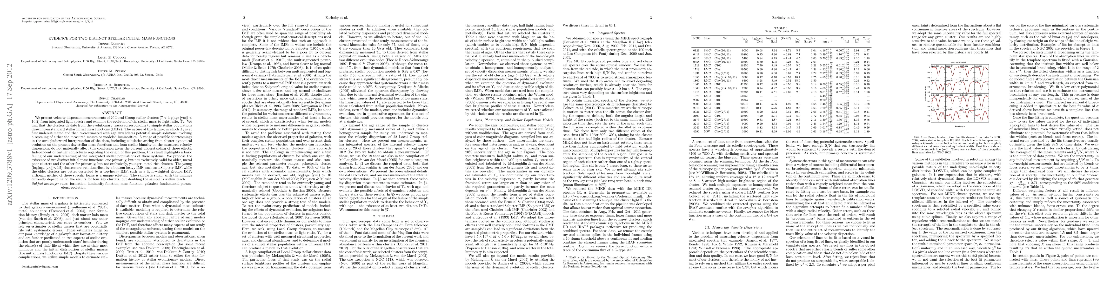 We present velocity dispersion measurements of 20 Local Group stellar clusters (7 < log(age [yrs]) < 10.2) from integrated light spectra and examine the evolution of the stellar mass-to-light ratio, Upsilon_*. We find that the clusters deviate from the evolutionary tracks corresponding to simple stellar populations drawn from standard stellar initial mass functions (IMFs). The nature of this failure, in which Upsilon_* is at first underestimated and then overestimated with age, invalidates potential simple solutions involving a rescaling of either the measured masses or modeled luminosities. A range of possible shortcomings in the straightforward interpretation of the data, including subtleties arising from cluster dynamical evolution on the present day stellar mass functions and from stellar binarity on the measured velocity dispersions, do not materially affect this conclusion given the current understanding of those effects. Independent of further conjectures regarding the origin of this problem, this result highlights a basic failing of our understanding of the integrated stellar populations of these systems. We propose the existence of two distinct initial mass functions, one primarily, but not exclusively, valid for older, metal poor clusters and the other for primarily, but not exclusively, younger, metal rich clusters. The young (log(age [yrs])< 9.5) clusters are well-described by a bottom-heavy IMF, such as a Salpeter IMF, while the older clusters are better described by a top-heavy IMF, such as a light-weighted Kroupa IMF, although neither of these specific forms is a unique solution. The sample is small, with the findings currently depending on the results for four key clusters, but doubling the sample is within reach.