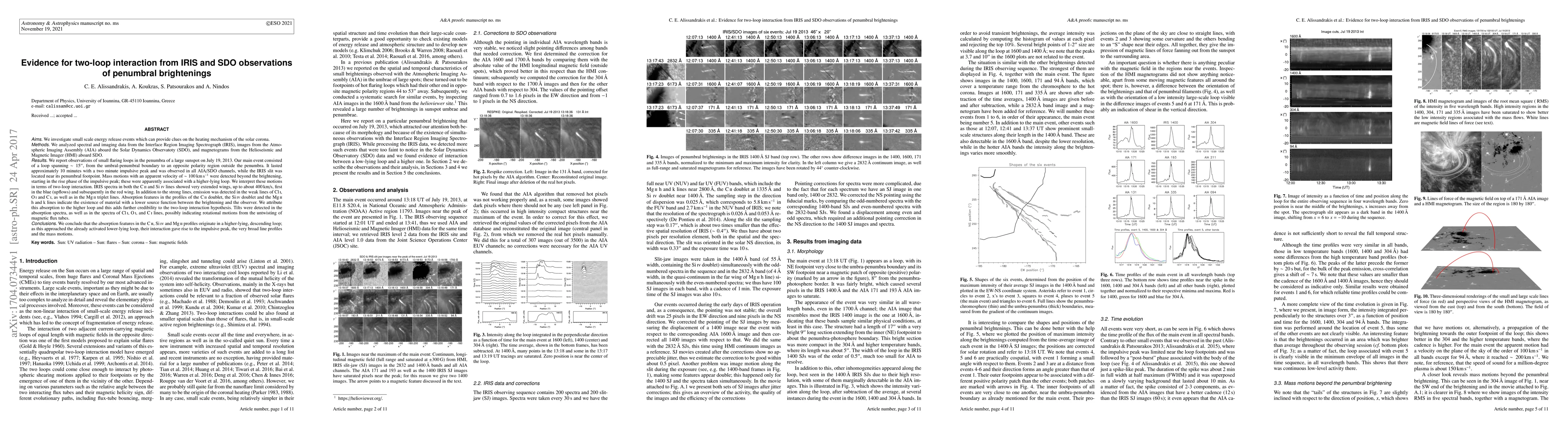 This study analyzes spectral and imaging data from IRIS, AIA, and HMI to observe small flaring loops in a sunspot's penumbra, revealing a two-minute impulsive peak and mass motions indicative of a two-loop interaction. Spectral data from IRIS show broad line profiles and absorption features suggesting material from a higher-lying descending loop interacting with a lower-lying loop.