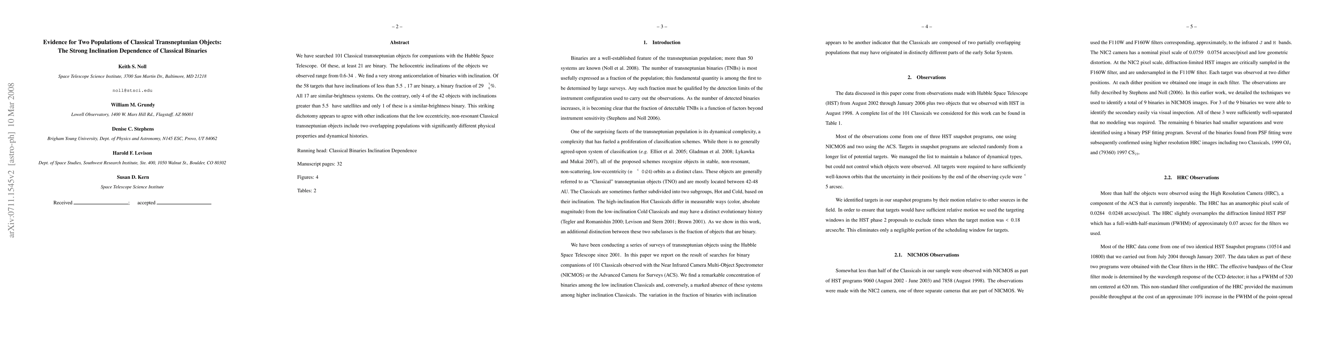 This study identifies a strong inclination dependence in binary systems among Classical Transneptunian Objects (TNOs), finding that lower inclination objects are more likely to be binary, especially similar-brightness binaries. This suggests the existence of two distinct populations of TNOs with different physical properties and dynamical histories.