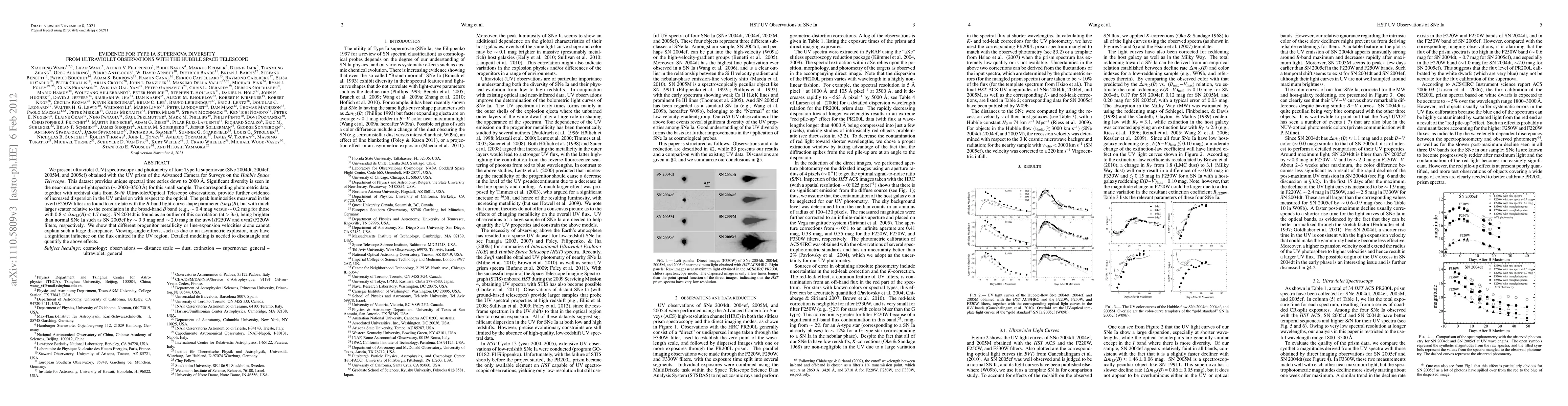 This study uses ultraviolet observations from the Hubble Space Telescope to reveal significant diversity among four Type Ia supernovae, indicating increased dispersion in UV emission compared to optical. SN 2004dt stands out as an outlier, suggesting that viewing-angle effects due to an asymmetric explosion may influence UV flux, necessitating detailed modeling to understand these variations.
