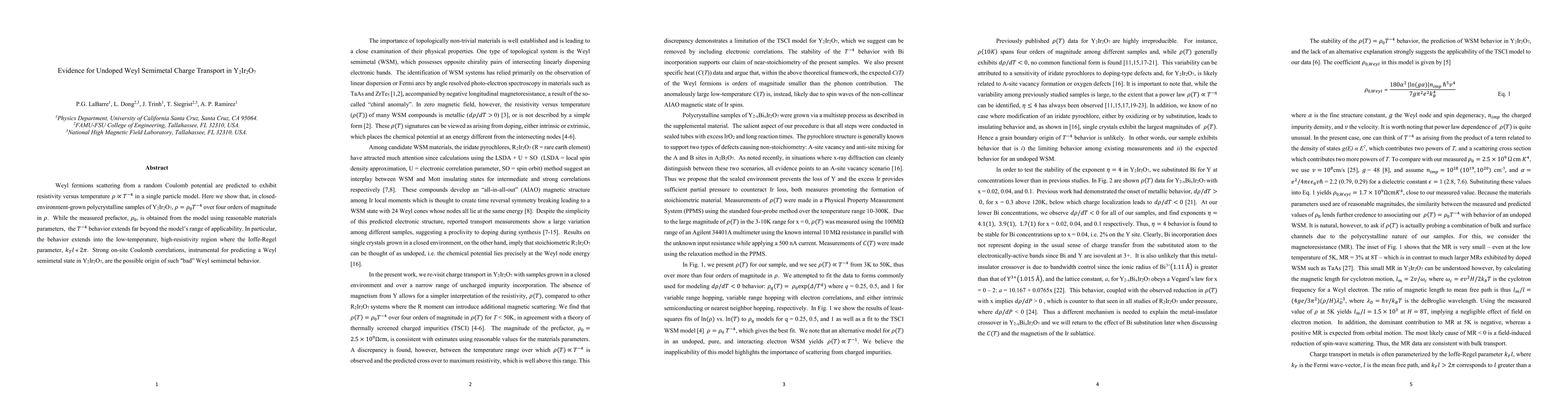 This study demonstrates that $Y_{2}Ir_{2}O_{7}$ exhibits Weyl semimetal charge transport with resistivity $\rho \propto T^{-4}$ over four orders of magnitude, extending beyond the model's applicability, suggesting strong on-site Coulomb correlations may underpin its unique behavior.