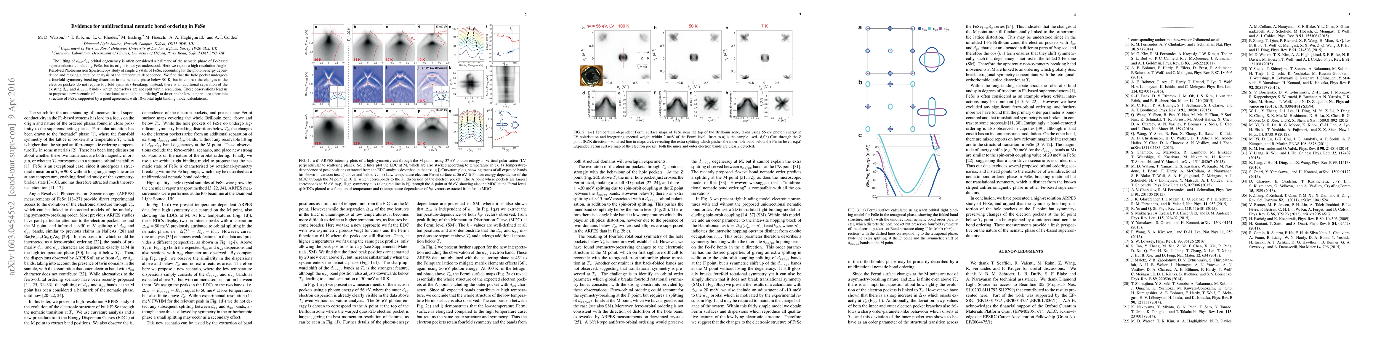 This study reveals a fourfold-symmetry-breaking distortion in the hole pocket of FeSe below 90 K, proposing a new "unidirectional nematic bond ordering" model that separates $d_{xy}$ and $d_{xz/yz}$ bands without requiring symmetry breaking in electron pockets. This is supported by angle-resolved photoemission spectroscopy and tight binding model calculations.