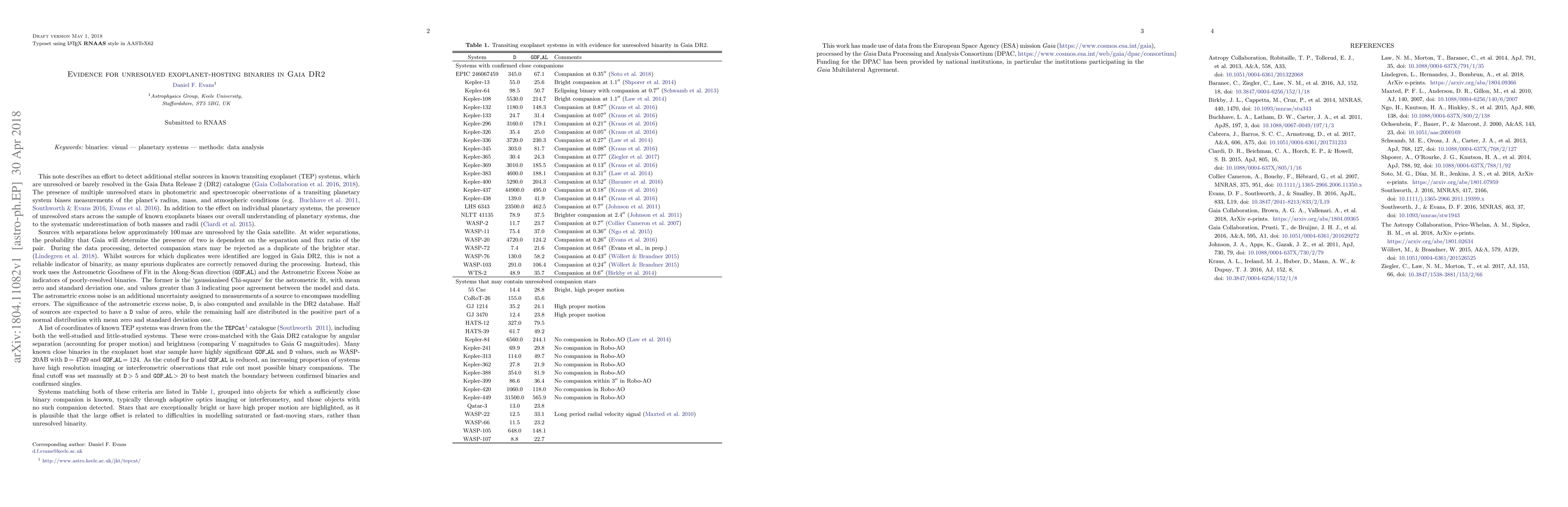 This research identifies unresolved binary star systems among known exoplanet hosts using Gaia DR2 data. It highlights how these unresolved binaries bias measurements of planetary properties, affecting our understanding of exoplanetary systems.