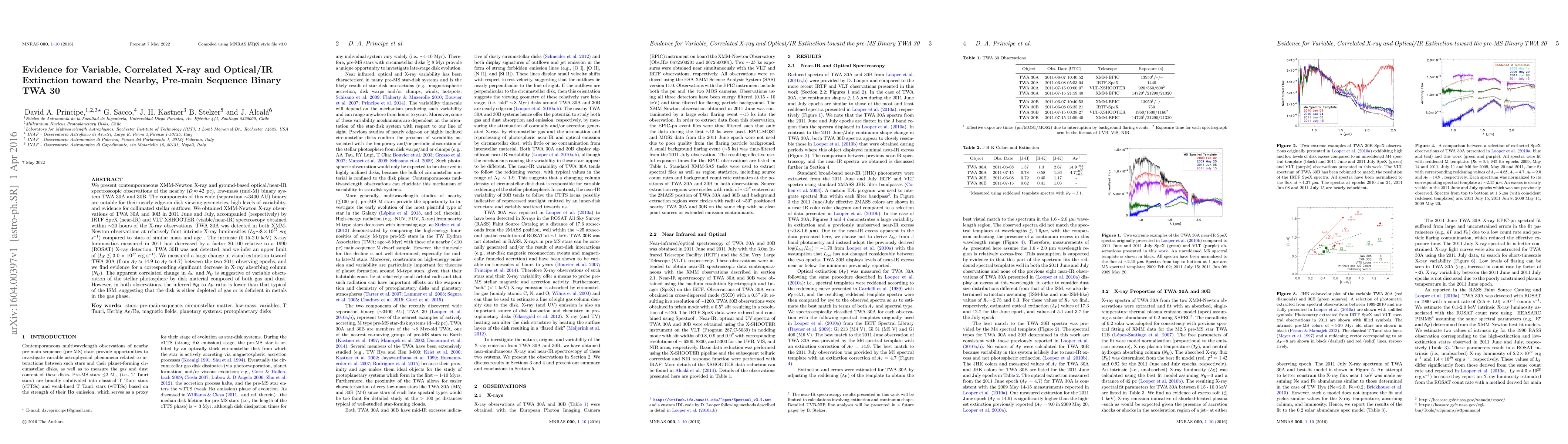This study presents XMM-Newton X-ray and optical/near-IR spectroscopic observations of the binary system TWA 30, revealing significant variability in X-ray and optical/IR extinction. The findings suggest variable obscuration by disk material, with a lower-than-typical gas-to-dust ratio in the disk.