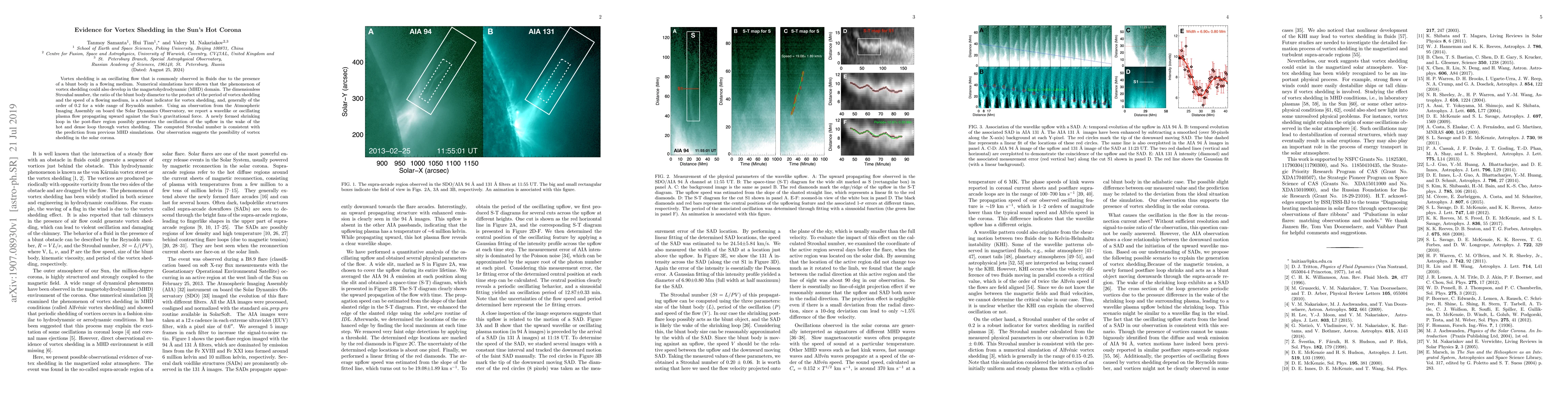 Researchers discovered evidence of vortex shedding in the Sun's hot corona, a phenomenon typically seen in fluid flows, using data from the Solar Dynamics Observatory. This finding suggests that complex oscillations in the solar plasma may be caused by vortex shedding.