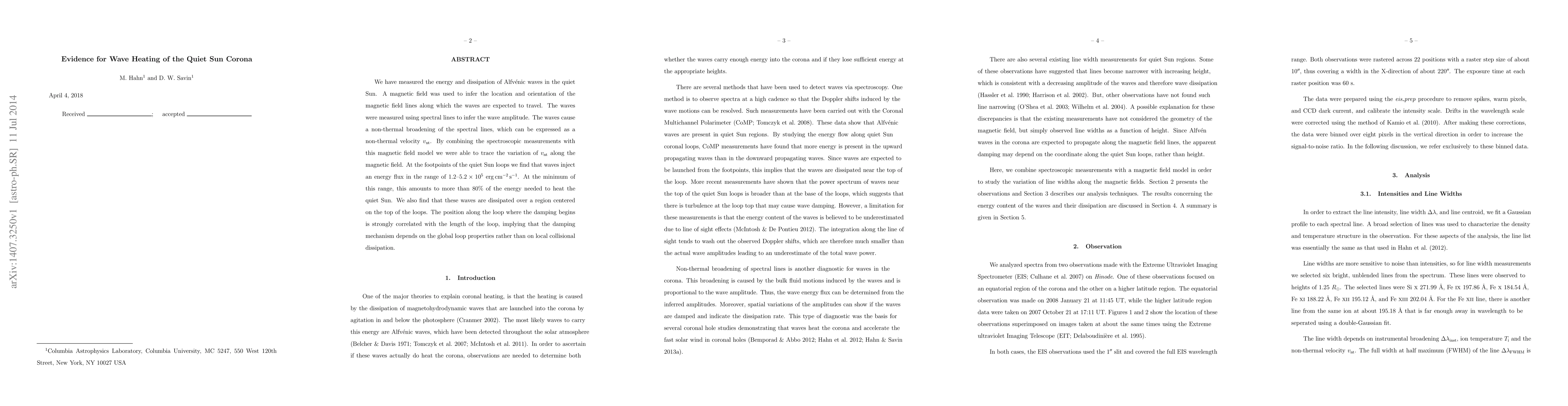 We have measured the energy and dissipation of Alfvenic waves in the quiet Sun. A magnetic field was used to infer the location and orientation of the magnetic field lines along which the waves are expected to travel. The waves were measured using spectral lines to infer the wave amplitude. The waves cause a non-thermal broadening of the spectral lines, which can be expressed as a non-thermal velocity v_nt. By combining the spectroscopic measurements with this magnetic field model we were able to trace the variation of v_nt along the magnetic field. At the footpoints of the quiet Sun loops we find that waves inject an energy flux in the range of 1.2-5.2 x 10^5 erg cm^-2 s^-1. At the minimum of this range, this amounts to more than 80% of the energy needed to heat the quiet Sun. We also find that these waves are dissipated over a region centered on the top of the loops. The position along the loop where the damping begins is strongly correlated with the length of the loop, implying that the damping mechanism depends on the global loop properties rather than on local collisional dissipation.