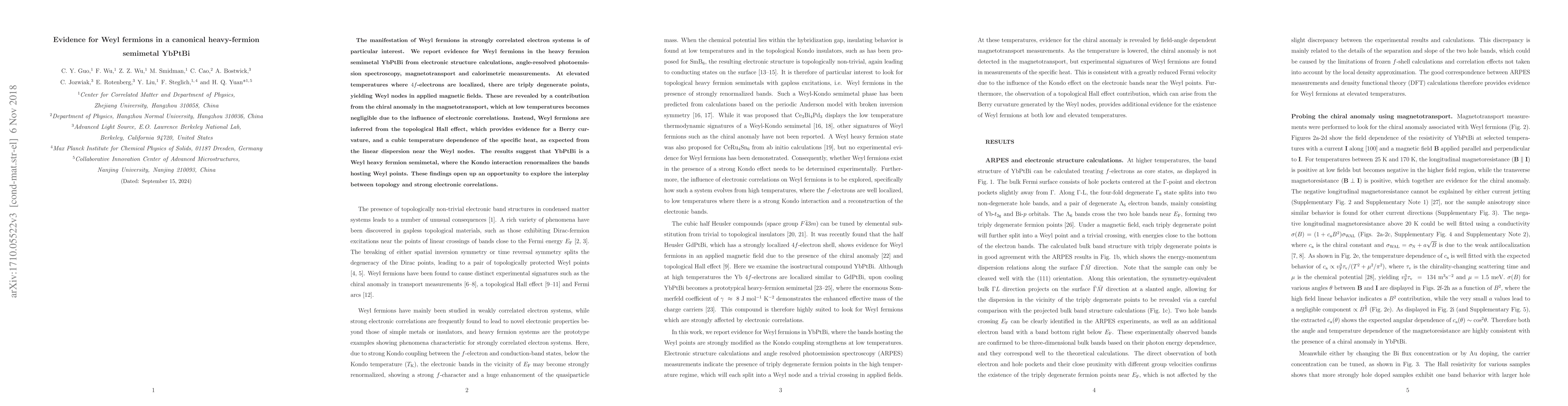 This study provides evidence for Weyl fermions in the heavy-fermion semimetal YbPtBi using electronic structure calculations and multiple experimental techniques, revealing topological properties and the influence of strong electronic correlations on the Weyl nodes.
