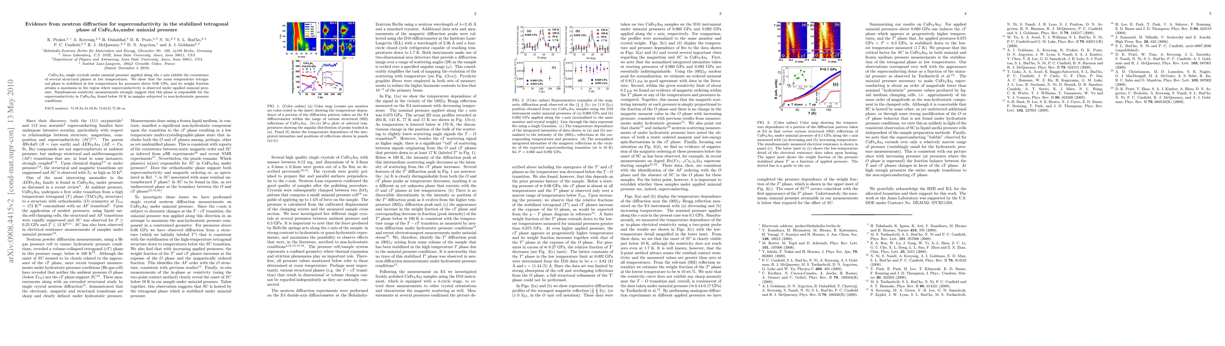 Summary: Neutron diffraction reveals that CaFe2As2 stabilizes a tetragonal phase under uniaxial pressure, which coincides with superconductivity observed below 10 K, suggesting the tetragonal phase is responsible for the superconductivity.