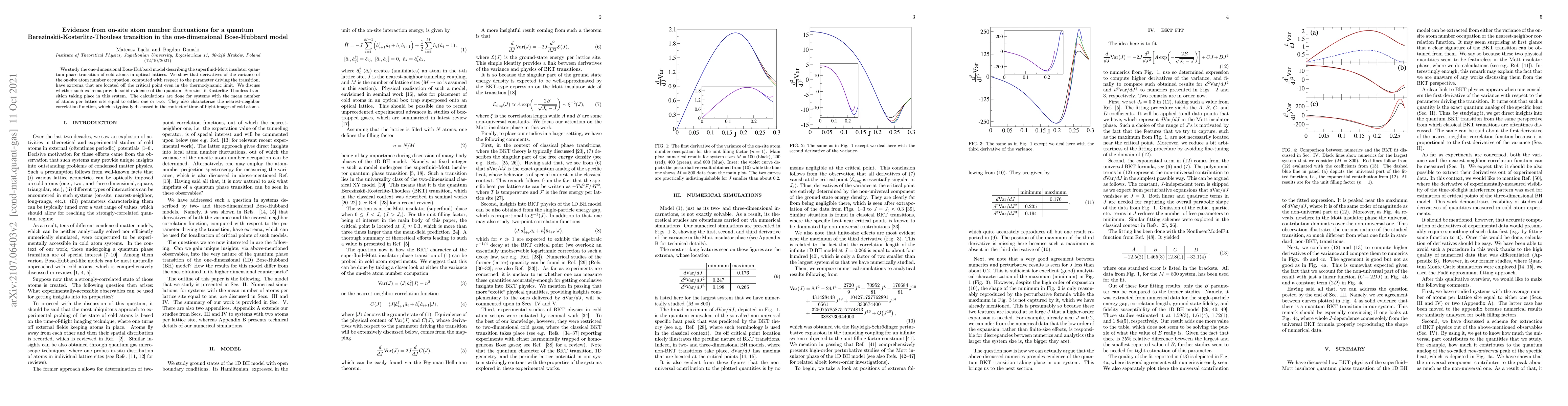 This research investigates the superfluid-Mott insulator transition in the one-dimensional Bose-Hubbard model, finding that extrema in the derivatives of the variance of on-site atom number fluctuations occur off the critical point, potentially indicating a quantum Berezinskii-Kosterlitz-Thouless transition. The analysis also examines the nearest-neighbor correlation function relevant to cold atom systems.