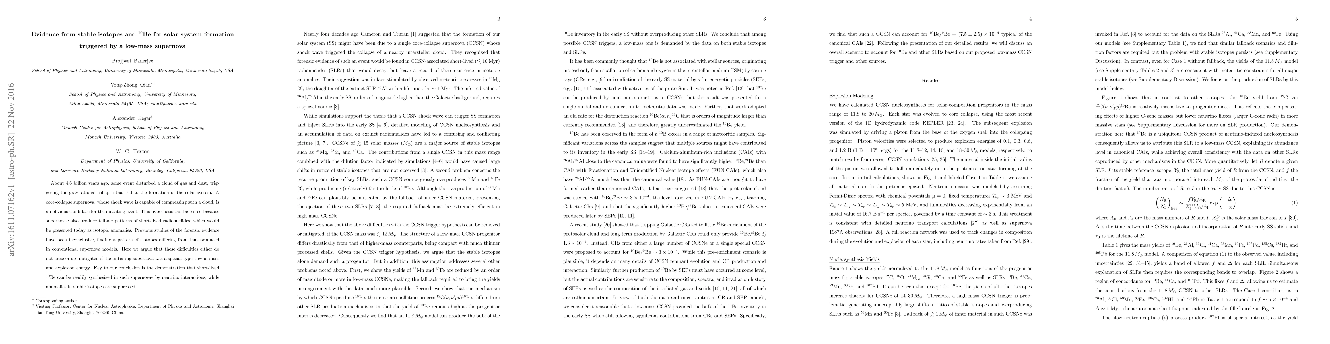 About 4.6 billion years ago, some event disturbed a cloud of gas and dust, triggering the gravitational collapse that led to the formation of the solar system. A core-collapse supernova, whose shock wave is capable of compressing such a cloud, is an obvious candidate for the initiating event. This hypothesis can be tested because supernovae also produce telltale patterns of short-lived radionuclides, which would be preserved today as isotopic anomalies. Previous studies of the forensic evidence have been inconclusive, finding a pattern of isotopes differing from that produced in conventional supernova models. Here we argue that these difficulties either do not arise or are mitigated if the initiating supernova was a special type, low in mass and explosion energy. Key to our conclusion is the demonstration that short-lived Be-10 can be readily synthesized in such supernovae by neutrino interactions, while anomalies in stable isotopes are suppressed.
