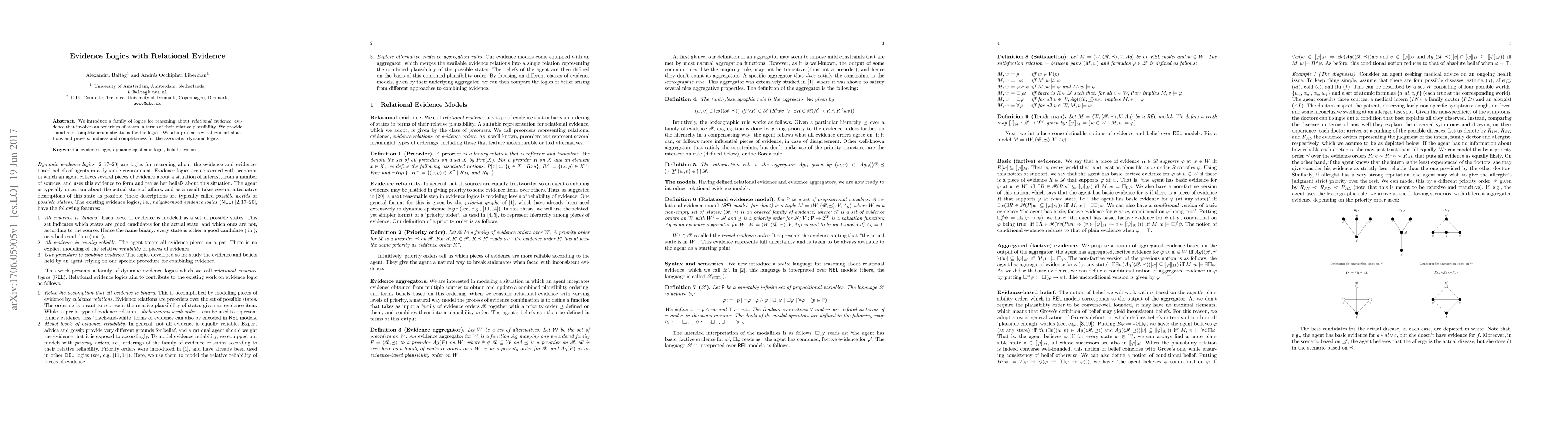 This paper introduces logics for reasoning about relational evidence, which orders states by relative plausibility, and provides sound and complete axiomatizations. It also explores evidential actions and proves their soundness and completeness within the dynamic logic framework.