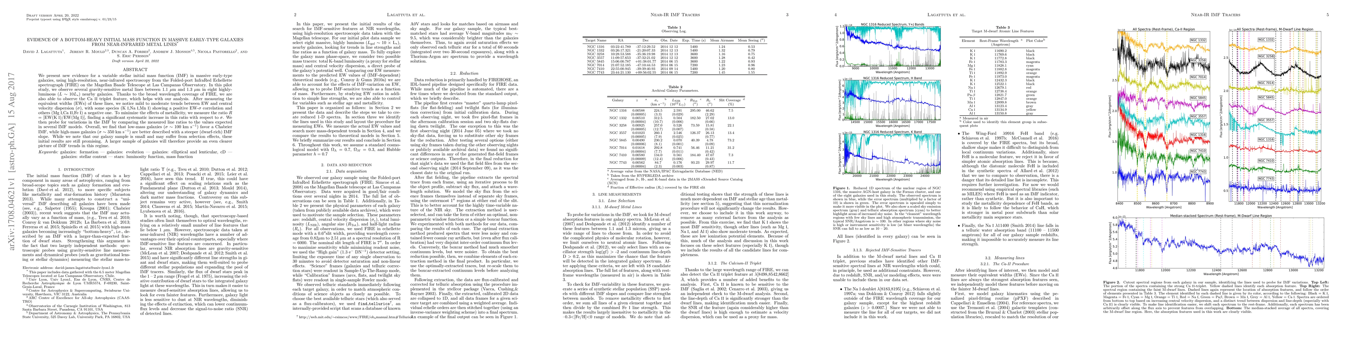 This research uses near-infrared spectroscopy from FIRE on Magellan Baade Telescope to examine metal lines in massive early-type galaxies. The study reveals a trend where low-mass galaxies favor a Chabrier IMF, while high-mass galaxies are better described with a steeper (dwarf-rich) IMF slope, suggesting a variable stellar initial mass function (IMF) in these galaxies.