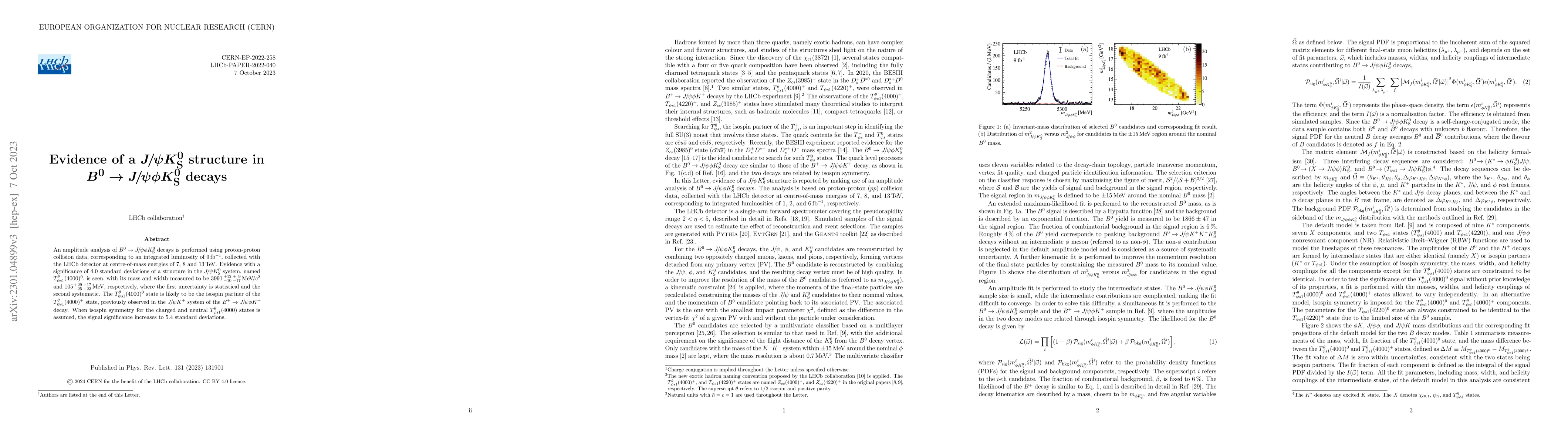 The paper reports an amplitude analysis of $B^0 \to J/\psi \phi K_S^0$ decays revealing evidence of a new structure in the $J/\psi K_S^0$ system, named $T_{\psi s1}^{\theta}(4000)^0$, with a mass of $3991\pm 12$ MeV and width of $105\pm 29$ MeV. The observation supports the existence of an isospin partner to a previously observed state in the $J/\psi K^+$ system.