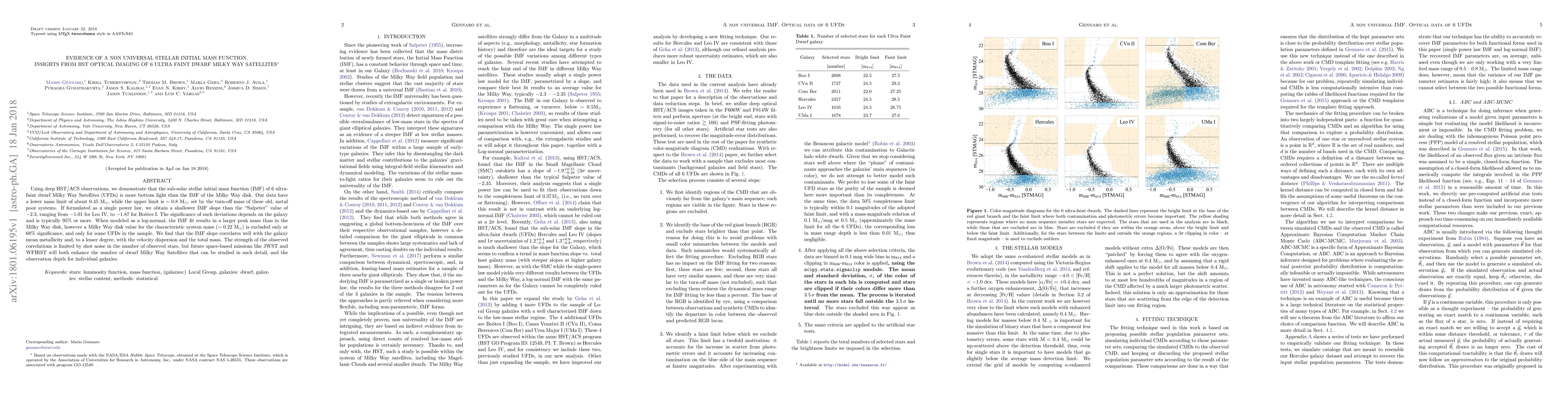 This study using HST/ACS imaging reveals that the stellar initial mass function (IMF) in 6 ultra-faint dwarf Milky Way satellites is shallower than the Milky Way's, with a slope ranging from -1.01 to -1.87. The IMF correlates with galaxy metallicity, velocity dispersion, and total mass, suggesting variations in the IMF across different galaxies.