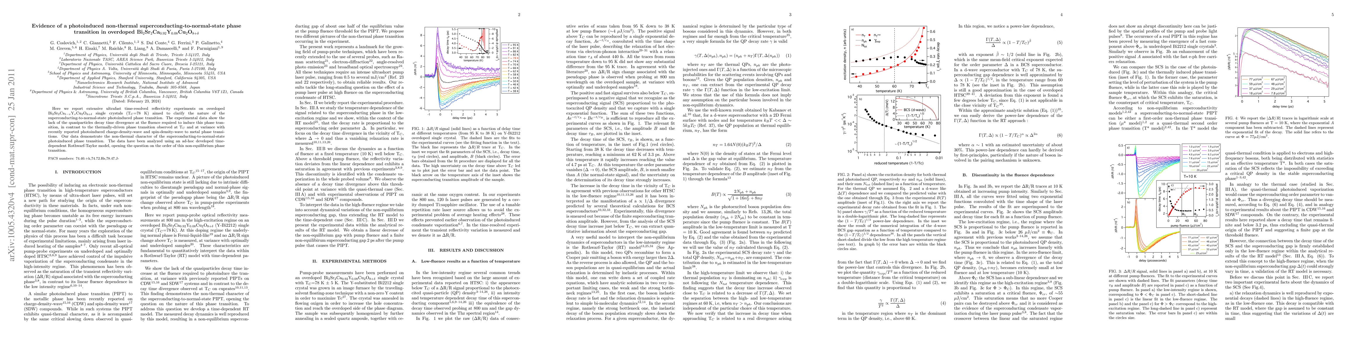 Here we report extensive ultrafast time-resolved reflectivity experiments on overdoped Bi$_{2}$Sr$_{2}$Ca$_{1-x}$Y$_x$Cu$_{2}$O$_{8+\delta}$ single crystals (T$_C$=78 K) aimed to clarify the nature of the superconducting-to-normal-state photoinduced phase transition. The experimental data show the lack of the quasiparticles decay time divergence at the fluence required to induce this phase transition, in contrast to the thermally-driven phase transition observed at T$_C$ and at variance with recently reported photoinduced charge-density-wave and spin-density-wave to metal phase transitions. Our data demonstrate the non-thermal character of the superconducting-to-normal-state photoinduced phase transition. The data have been analyzed using an ad-hoc developed time-dependent Rothwarf-Taylor model, opening the question on the order of this non-equilibrium phase transition.