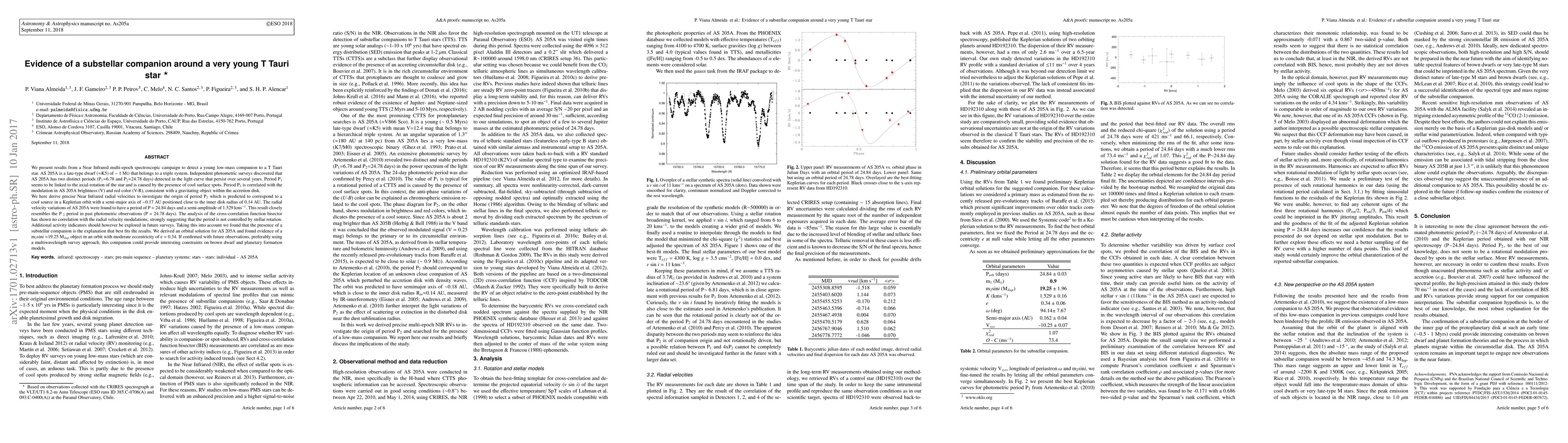 A substellar companion orbiting a young T Tauri star is detected with precise radial velocity measurements, offering constraints on brown dwarf and planetary formation models.