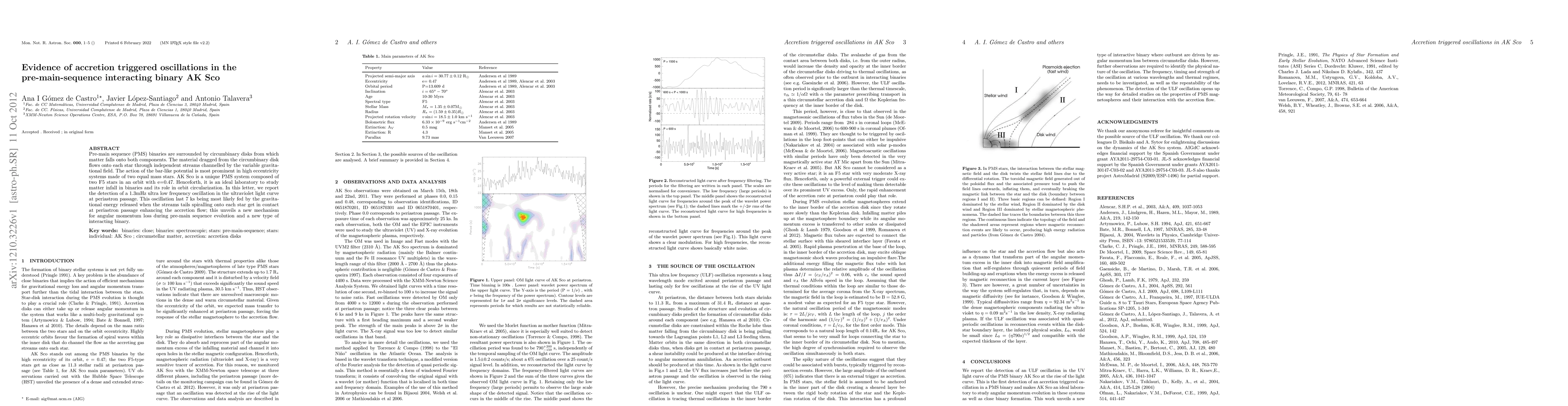 Pre-main sequence (PMS) binaries are surrounded by circumbinary disks from which matter falls onto both components. The material dragged from the circumbinary disk flows onto each star through independent streams channelled by the variable gravitational field. The action of the bar-like potential is most prominent in high eccentricity systems made of two equal mass stars. AK Sco is a unique PMS system composed of two F5 stars in an orbit with e=0.47. Henceforth, it is an ideal laboratory to study matter infall in binaries and its role in orbit circularization. In this letter, we report the detection of a 1.3mHz ultra low frequency oscillation in the ultraviolet light curve at periastron passage. This oscillation last 7 ks being most likely fed by the gravitational energy released when the streams tails spiralling onto each star get in contact at periastron passage enhancing the accretion flow; this unveils a new mechanism for angular momentum loss during pre-main sequence evolution and a new type of interacting binary.