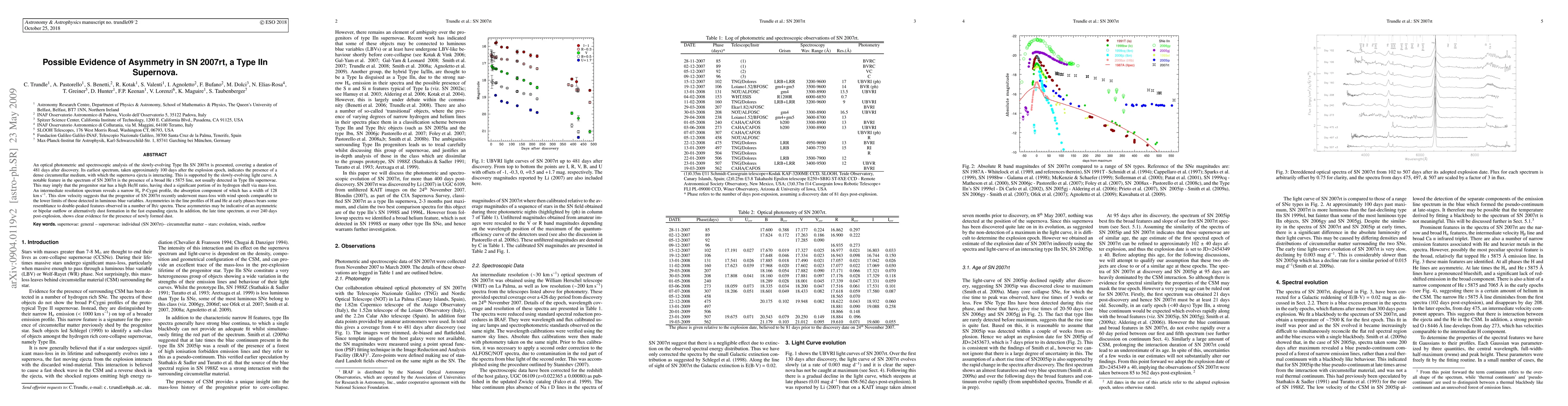 This paper presents an analysis of the Type IIn supernova SN 2007rt, revealing significant asymmetry in its spectral line profiles and the presence of newly formed dust. The findings suggest an asymmetric or bipolar outflow in the progenitor star's ejecta.