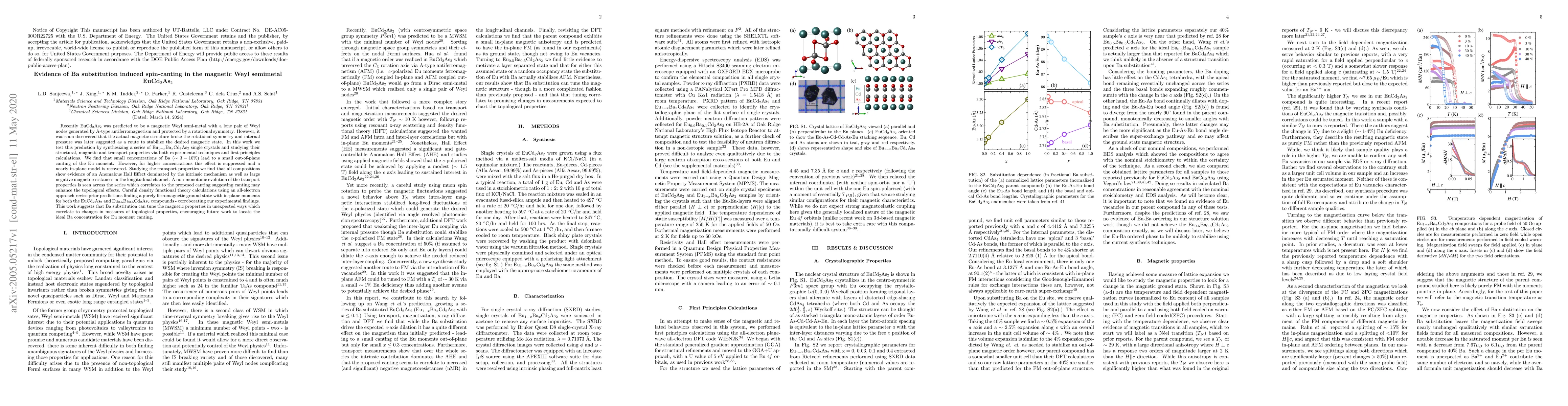 Researchers found that substituting barium into a magnetic Weyl semimetal changes its magnetic properties, including an unusual 'spin-canting' effect where the magnetic moment tilts out of plane at low concentrations, but returns to in-plane alignment at higher concentrations.