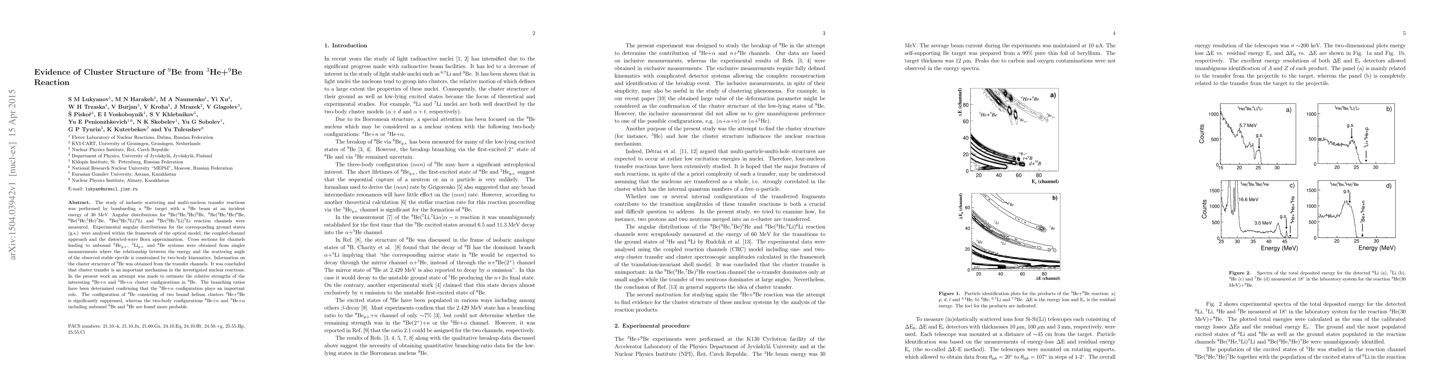 This study investigates the cluster structure of $^9$Be through inelastic scattering and multi-nucleon transfer reactions, revealing the importance of cluster transfer mechanisms. The analysis supports the presence of $^5$He+$\alpha$ configurations over $^3$He+$^6$He, indicating that unbound clusters like $^8$Be and $^5$He are more probable in $^9$Be.